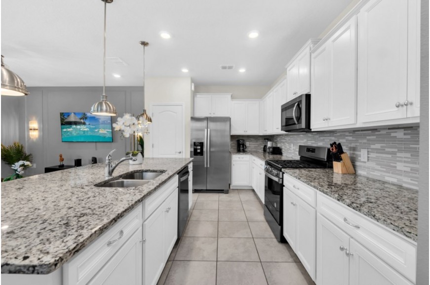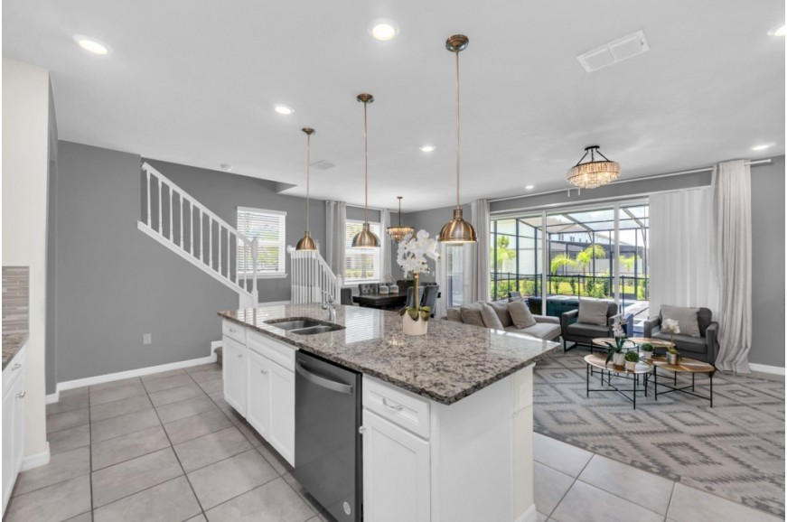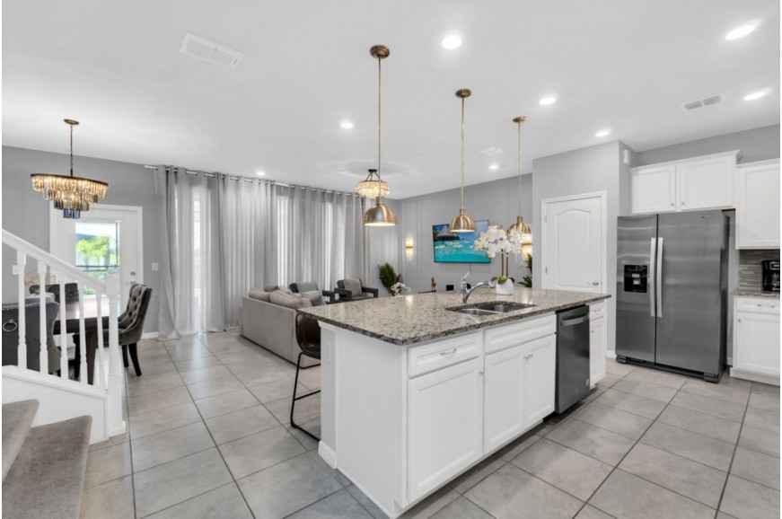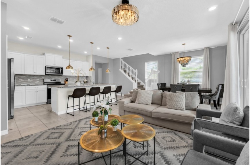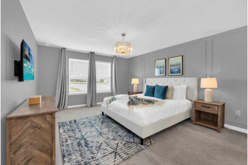 Solterra Resort - Davenport, Florida is a paradise located only 15 minutes from the area's main attraction... Walt Disney World. This luxury resort sits nestled just outside of Orlando, Florida, and has quickly become one of the most desired resorts in the Orlando area. During your stay, you will enjoy this well-appointed home that has been designed and decorated to provide you and your family an abundance of luxury amenities and leaves you well equipped to vacation with all the usual items you would expect to find at home. Solterra Resort is only a 30-minute drive from the Orlando International Airport and is situated central to all of Orlando’s famous attractions. The resort amenities include a 6700 square foot clubhouse, swimming pool, spa, fitness center, business center with Internet, volleyball, tennis, children's playground, and picnic area. This spacious 5 bedroom townhome can comfortably accommodate a larger family or group of up to 10 people.