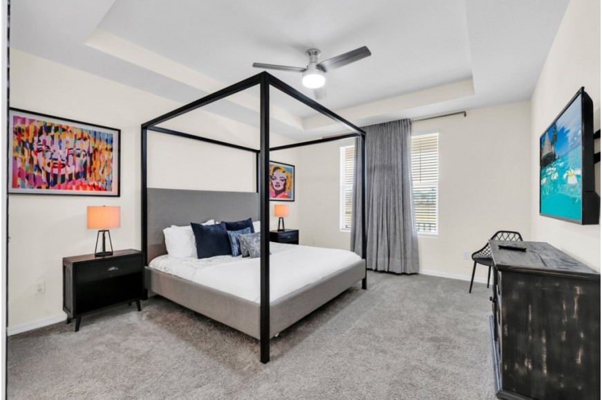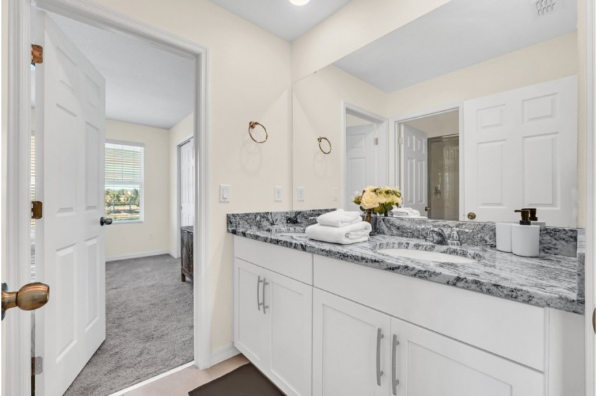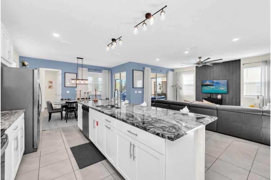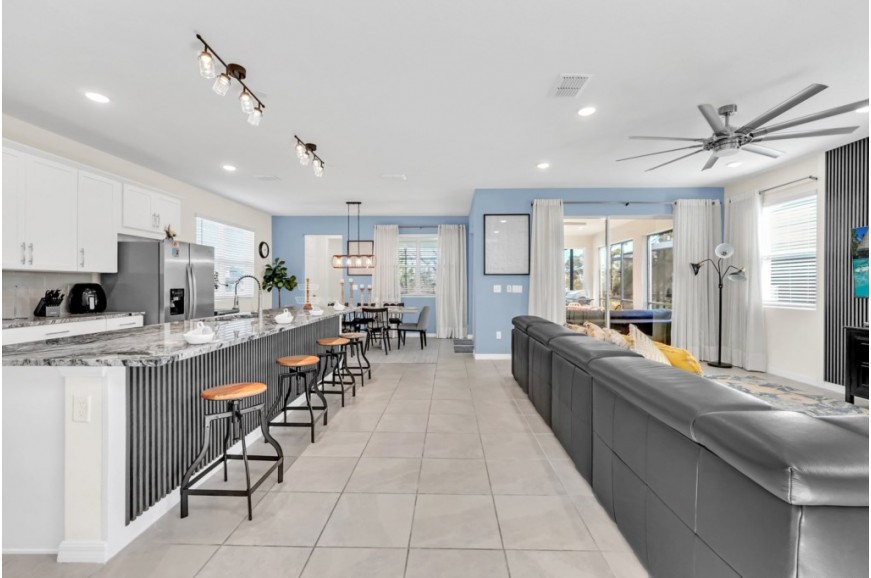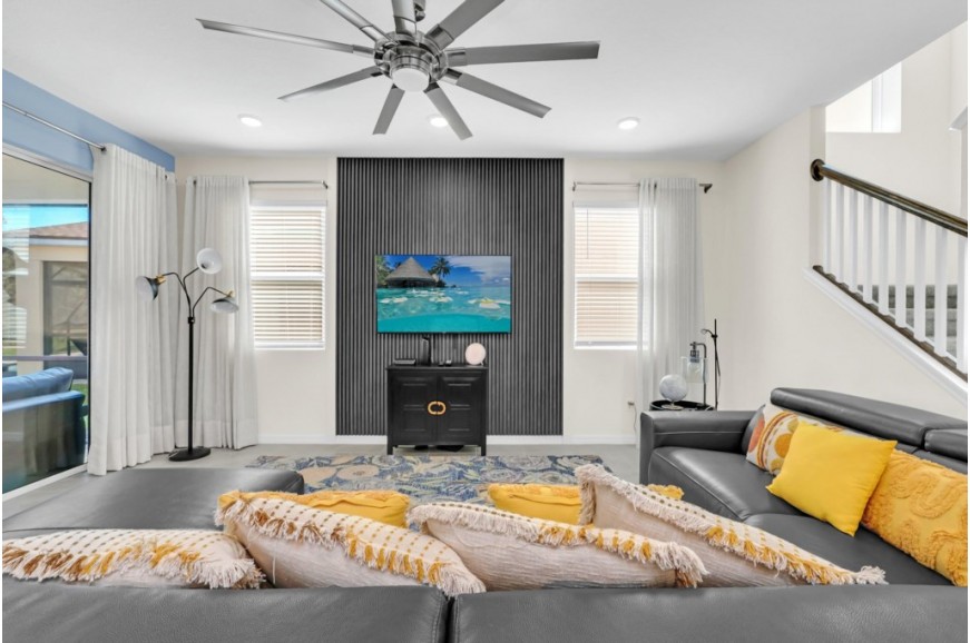 Solara Resort - Kissimmee, Florida is an upscale community currently under development just 7 miles from Walt Disney World. This gated resort community sits nestled just outside of Orlando, Florida. During your stay, you will enjoy this well-appointed home that has been designed and decorated to provide you and your family with an abundance of luxury amenities and leaves you well-equipped to vacation with all the usual items you would expect to find at home. The resort is only a 30-minute drive from the Orlando International Airport and is situated central to all of Orlando’s famous attractions. The resort boasts an expansive clubhouse that includes a grand pool, complete with a surfing simulator, cabanas, pool bar, children's playground, sand volleyball court, basketball court, and soccer field. Inside the clubhouse sits the lounge, bar & grill, fitness center, business center, and sundries store. This spacious 6-bedroom holiday villa can comfortably accommodate a larger family or group of up to 12 people.