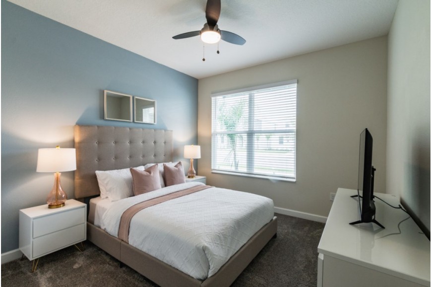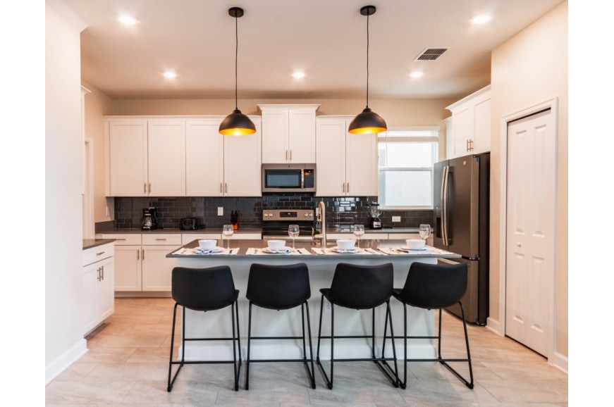 The Retreat at Champions Gate - Kissimmee, Florida is a new upscale gated resort community located just 12 miles from Walt Disney World. This luxury home sits nestled just outside of Orlando, Florida, and will quickly become one of the most desired locations in the Orlando area. During your stay, you will enjoy this well-appointed home that has been designed and decorated to provide you and your family an abundance of luxury amenities and leaves you well equipped to vacation with all the usual items you would expect to find at home. The Retreat at Champions Gate is only a 30-minute drive from the Orlando International Airport and is situated central to all of Orlando’s famous attractions. This spacious 5 bedroom holiday villa can comfortably accommodate a larger family or group of up to 10 people.