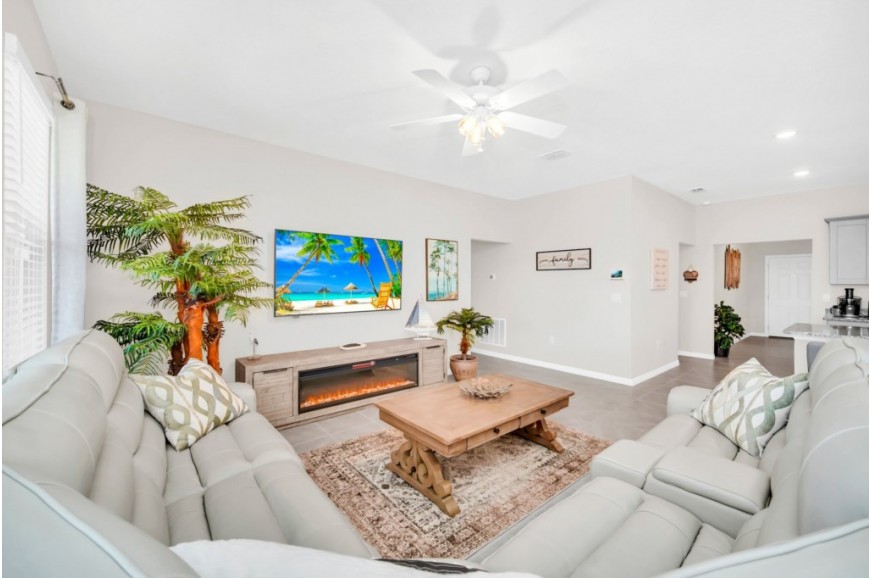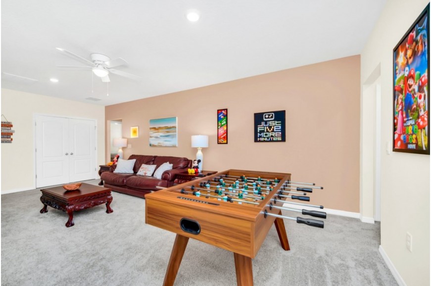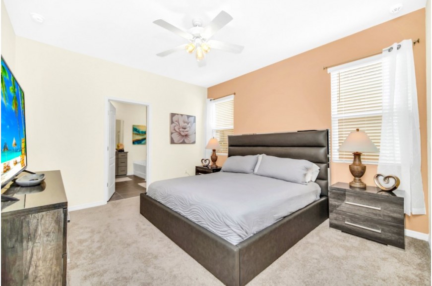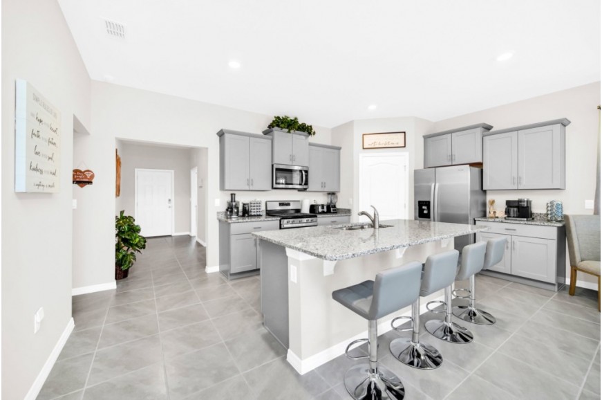 Solterra Resort - Davenport, Florida is a paradise located only 15 minutes from the area's main attraction... Walt Disney World. This luxury resort sits nestled just outside of Orlando, Florida and has quickly become one of the most desired resorts in the Orlando area. During your stay, you will enjoy this well-appointed home that has been designed and decorated to provide you and your family an abundance of luxury amenities and leaves you well equipped to vacation with all the usual items you would expect to find at home. Solterra Resort is only a 30-minute drive from the Orlando International Airport and is situated central to all if Orlando’s famous attractions. The resorts amenities include 6700 square foot clubhouse, swimming pool, spa, fitness center, business center with Internet, volleyball, tennis, children's playground and picnic area This spacious 7 bedroom pool home can comfortably accommodate a larger family or group of up to 14 people.