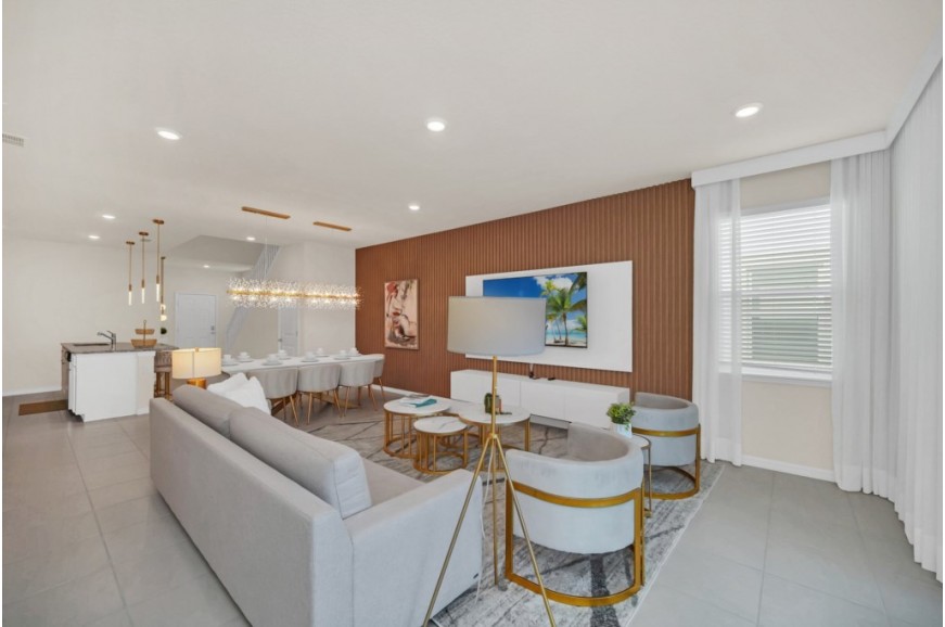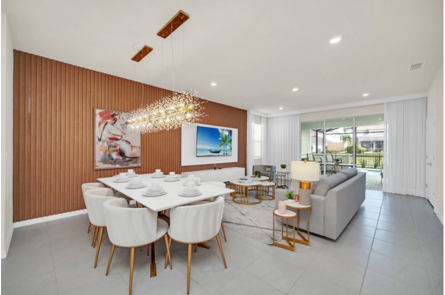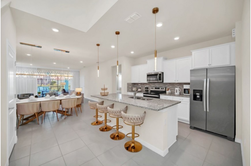 Windsor Island - Davenport, Florida is an upscale gated community located just 20-25 minutes from Walt Disney World. This luxury home sits nestled just outside of Orlando, Florida, and has quickly become one of the most desired locations in the Orlando area. During your stay, you will enjoy this well-appointed home that has been designed and decorated to provide you and your family an abundance of luxury amenities and leaves you well equipped to vacation with all the usual items you would expect to find at home. Windsor Island is only a 30-minute drive from the Orlando International Airport and is situated central to all of Orlando’s famous attractions. This spacious 7-bedroom holiday villa can comfortably accommodate a larger family or group of up to 14 people.