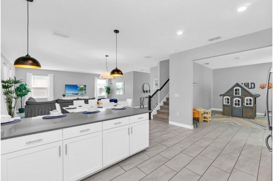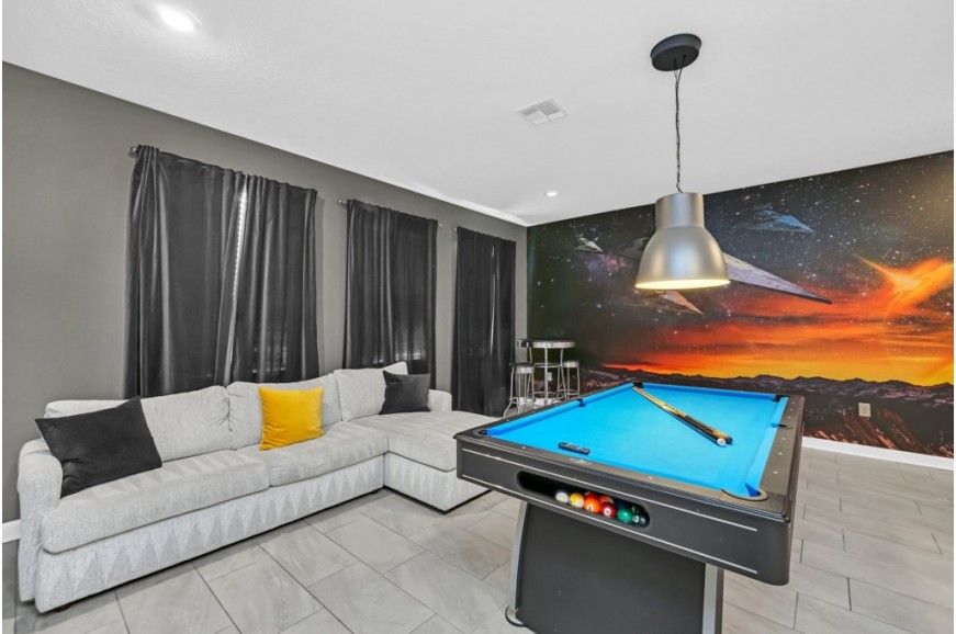 Storey Lake - Kissimmee, Florida is a brand new vacation community located just 4 miles from the magical world of Disney and just minutes to Universal, Sea World and the many water parks in the area. Central Florida is also home to some of the nation's top-rated golf courses and many are within a 10-minute drive of Storey Lake. The prime location lends itself to the premier shopping corridor including the famed Millennia, top restaurants and the world renowned town of Celebration inspired by Disney. Storey Lake is also a 30-minute drive from the Orlando International Airport. The resort offers the best in family fun and is host to a wide variety of amenities and activities. This spacious 6 bedroom holiday villa can comfortably accommodate a large family or group of up to 12 guests.