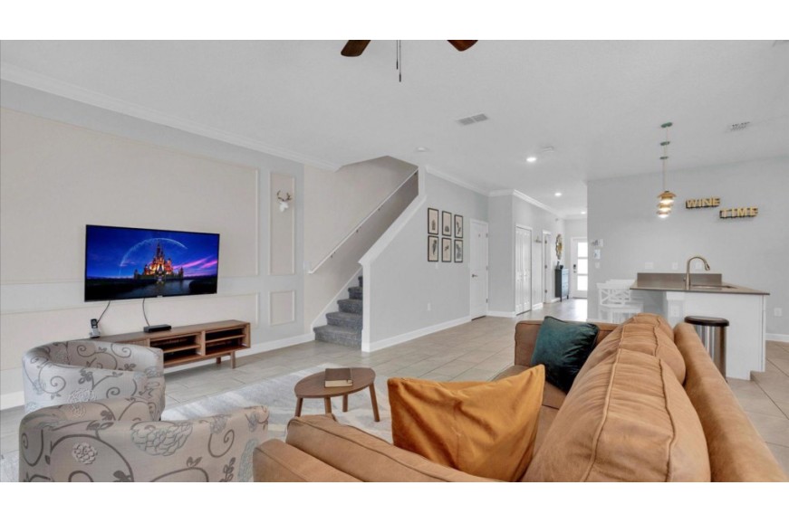 Storey Lake - Kissimmee, Florida is a brand new vacation community located just 4 miles from the magical world of Disney and just minutes to Universal, Sea World and the many water parks in the area. Central Florida is also home to some of the nation's top-rated golf courses and many are within a 10-minute drive of Storey Lake. The prime location lends itself to the premier shopping corridor including the famed Millennia, top restaurants and the world-renowned town of Celebration inspired by Disney. Storey Lake is also a 30-minute drive from the Orlando International Airport. The resort offers the best in family fun and is host to a wide variety of amenities and activities. This spacious 5 bedroom holiday villa can comfortably accommodate a large family or group of up to 10 guests.