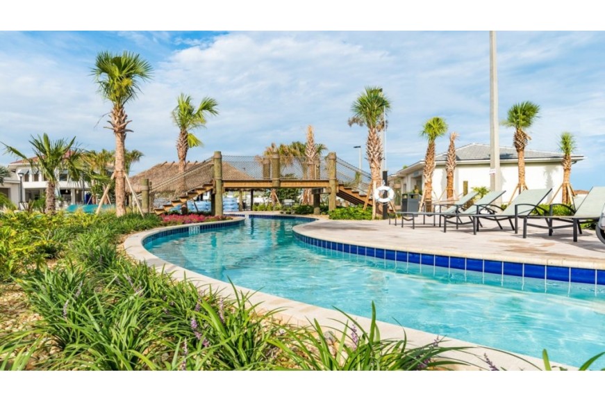 Designed for families and built for fun, Storey Lake Resort offers it all! Situated around a scenic lake with a variety of water amenities and activities including a tropical resort pool with a lazy river, two waterslides, and children's splash pad. Relax in the spa or sunbathe on the terrace and sand beach areas. Fishing, canoe & kayak rentals are available at the community dock. Enjoy a cold beverage or ice cream at the resort’s poolside café. Don’t forget to get in a game of mini-golf, volleyball or basketball. Escape the sun at the covered tiki bar or venture inside the resort’s clubhouse, which includes a guest lounge area, fitness center, and business center. Resort Disclaimer: Guests can use resort amenities, some with additional guest fees. We're not liable for closures or changes, and refunds won't be provided.