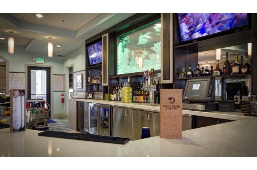 Guests enjoy a bounty of resort amenities at the Oasis Club at ChampionsGate, from tropical swimming pools, meandering lazy river, children’s water playground and splash pad. Steps away from the bustle of water fun is a secluded quiet pool and spa. Begin and end your day relaxing under the shade of a private cabana. Enjoy a tropical libation at the poolside tiki bar and grab a bite at the Grille Room and Bar.
