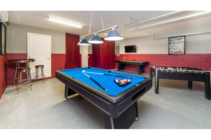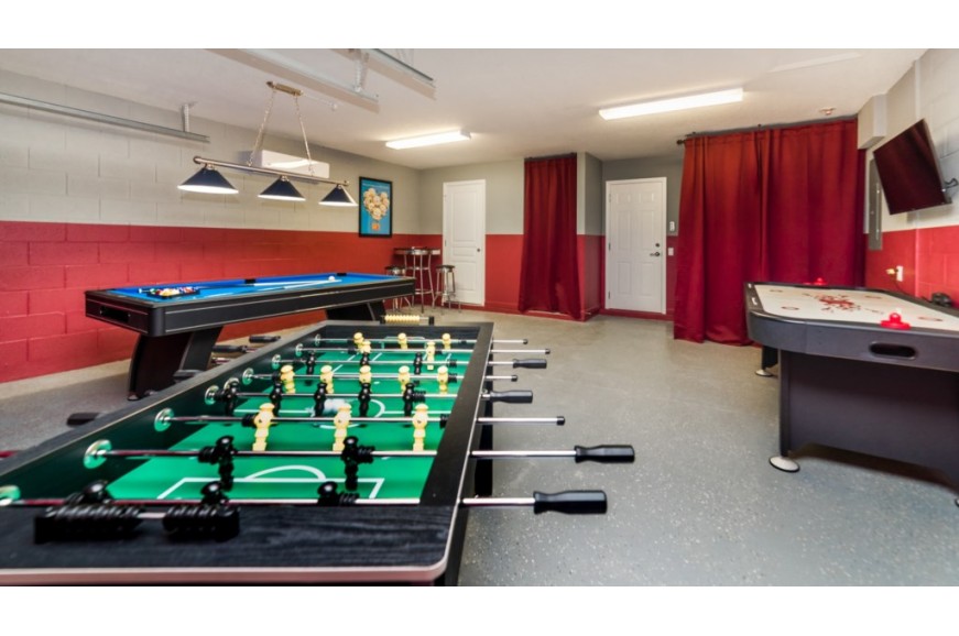 • Game Room with Pool Table, Foosball, and Air Hockey