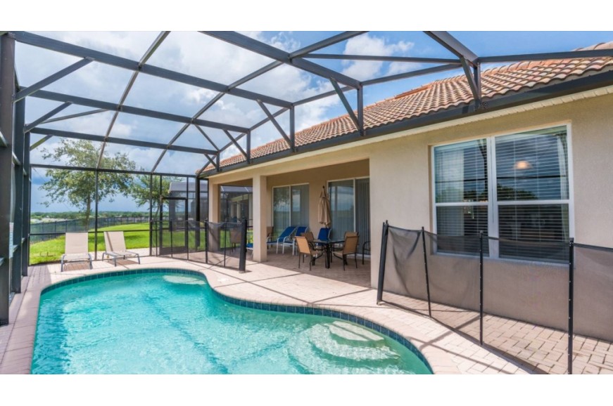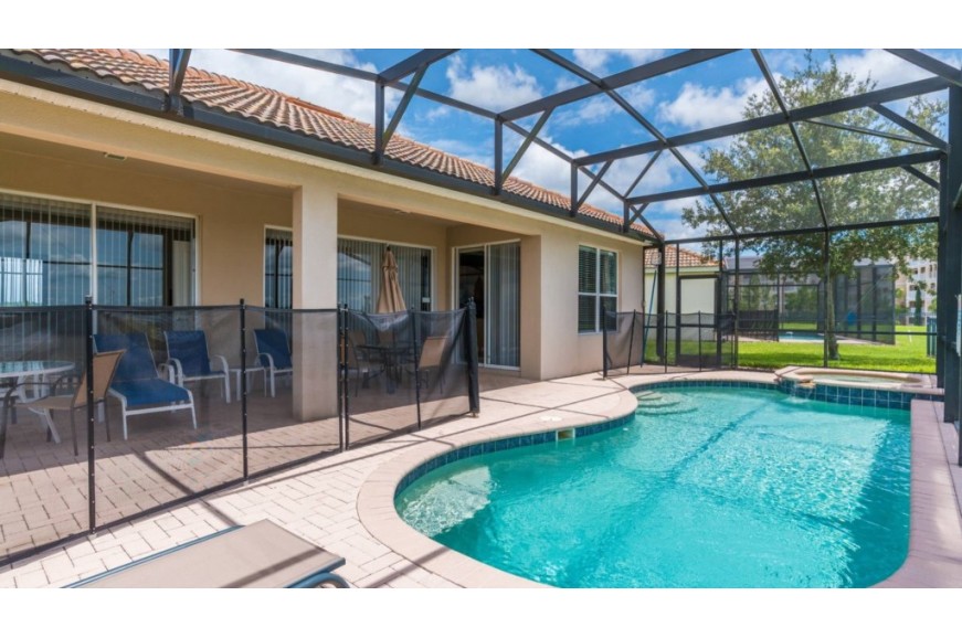 Windsor Hills - Kissimmee, Florida is an upscale gated community located just 2 miles from Walt Disney World. This luxury resort sits nestled just off Hwy 192 in Kissimmee, Florida, and is one of the most desired resorts in the Orlando area. During your stay, you will enjoy this well-appointed home that has been designed and decorated to provide you and your family an abundance of luxury amenities and leaves you well equipped to vacation with all the usual items you would expect to find at home. Windsor Hills Resort is only a 25-minute drive from the Orlando International Airport and is situated central to all if Orlando’s famous attractions. The resort amenities include a gated community, a water park with Olympic Size Swimming Pool, fountains, waterslides, a spa, separate toddler pool, tennis courts, volleyball, and children’s park and clubhouse. The Clubhouse has pool tables, ping-pong tables, a video games area, a sundry shop, a fitness room with top-of-the-line fitness equipment, and a high definition surround sound movie theater. There are other outdoor recreational activities all surrounding the double Olympic-size swimming pool creating a relaxing, playful atmosphere for the entire family! Windsor Hills has all the amenities of a five-star hotel or resort, but with the comfort, convenience, and privacy of a private home. This spacious 4 bedroom holiday villa can comfortably accommodate a larger family or group of up to 8 people.