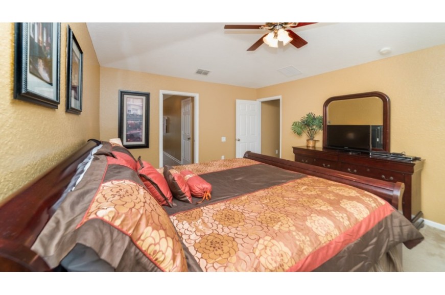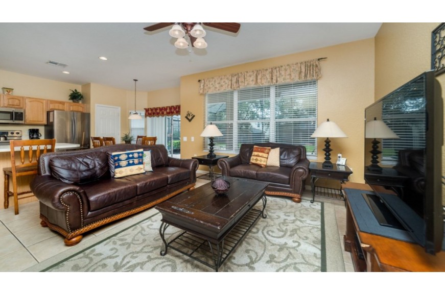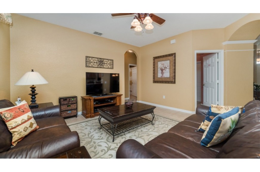 Windsor Hills - Kissimmee, Florida is an upscale gated community located just 2 miles from Walt Disney World. This luxury resort sits nestled just off Hwy 192 in Kissimmee, Florida, and is one of the most desired resorts in the Orlando area. During your stay, you will enjoy this well-appointed home that has been designed and decorated to provide you and your family an abundance of luxury amenities and leaves you well equipped to vacation with all the usual items you would expect to find at home. Windsor Hills Resort is only a 25-minute drive from the Orlando International Airport and is situated central to all if Orlando’s famous attractions. The resort amenities include a gated community, a water park with Olympic Size Swimming Pool, fountains, waterslides, a spa, separate toddler pool, tennis courts, volleyball, and children’s park and clubhouse. The Clubhouse has pool tables, ping-pong tables, a video games area, a sundry shop, a fitness room with top-of-the-line fitness equipment, and a high definition surround sound movie theater. There are other outdoor recreational activities all surrounding the double Olympic-size swimming pool creating a relaxing, playful atmosphere for the entire family! Windsor Hills has all the amenities of a five-star hotel or resort, but with the comfort, convenience, and privacy of a private home. This spacious 6 bedroom holiday villa can comfortably accommodate a larger family or group of up to 12 people.