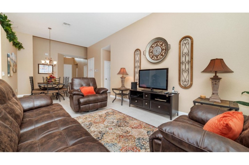 Windsor Hills - Kissimmee, Florida is an upscale gated community located just 2 miles from Walt Disney World. This luxury resort sits nestled just off Hwy 192 in Kissimmee, Florida, and is one of the most desired resorts in the Orlando area. During your stay, you will enjoy this well-appointed home that has been designed and decorated to provide you and your family an abundance of luxury amenities and leaves you well equipped to vacation with all the usual items you would expect to find at home. Windsor Hills Resort is only a 25-minute drive from the Orlando International Airport and is situated central to all if Orlando’s famous attractions. The resort amenities include a gated community, a water park with Olympic Size Swimming Pool, fountains, waterslides, a spa, separate toddler pool, tennis courts, volleyball, and children’s park and clubhouse. The Clubhouse has pool tables, ping-pong tables, a video games area, a sundry shop, a fitness room with top-of-the-line fitness equipment, and a high definition surround sound movie theater. There are other outdoor recreational activities all surrounding the double Olympic-size swimming pool creating a relaxing, playful atmosphere for the entire family! Windsor Hills has all the amenities of a five-star hotel or resort, but with the comfort, convenience, and privacy of a private home. This spacious 5 bedroom holiday villa can comfortably accommodate a larger family or group of up to 10 people.