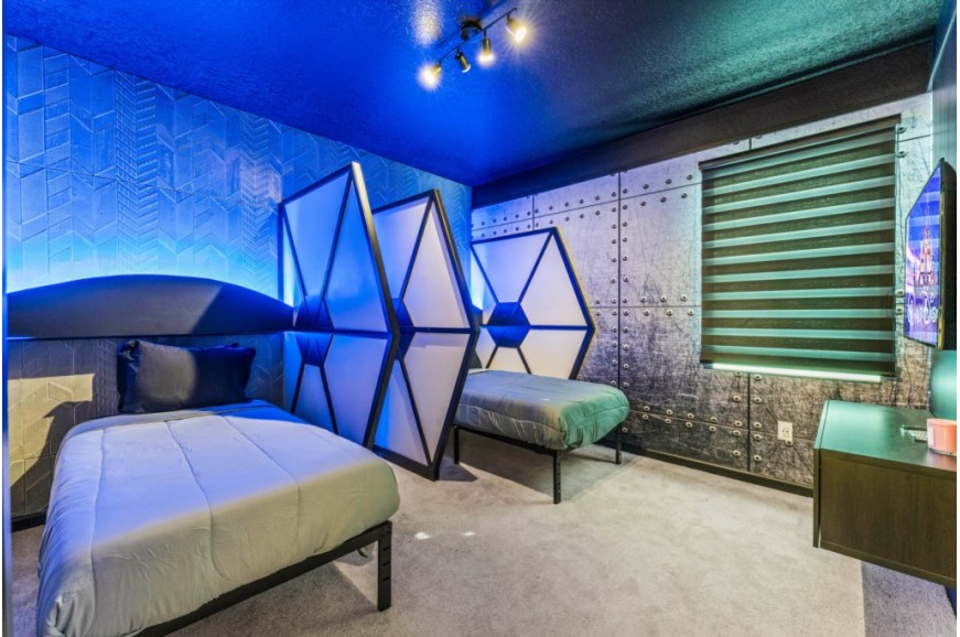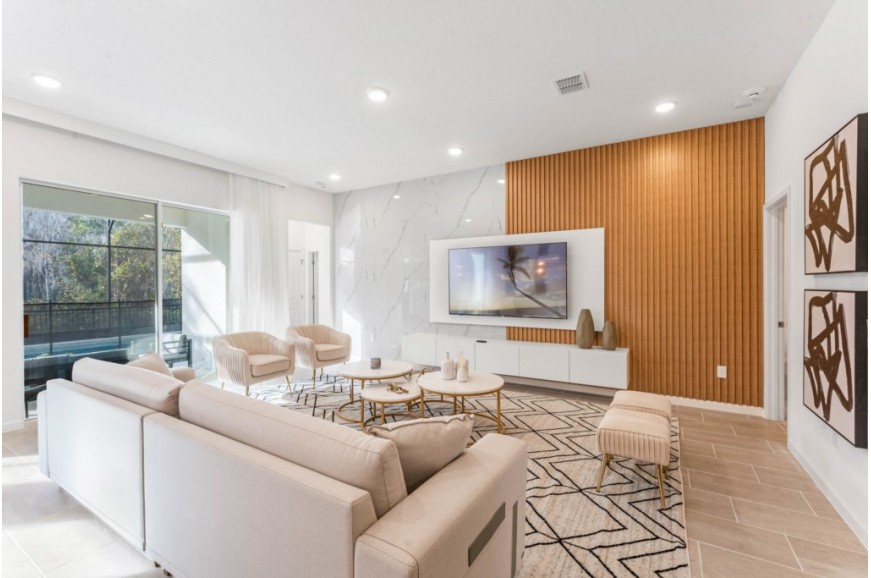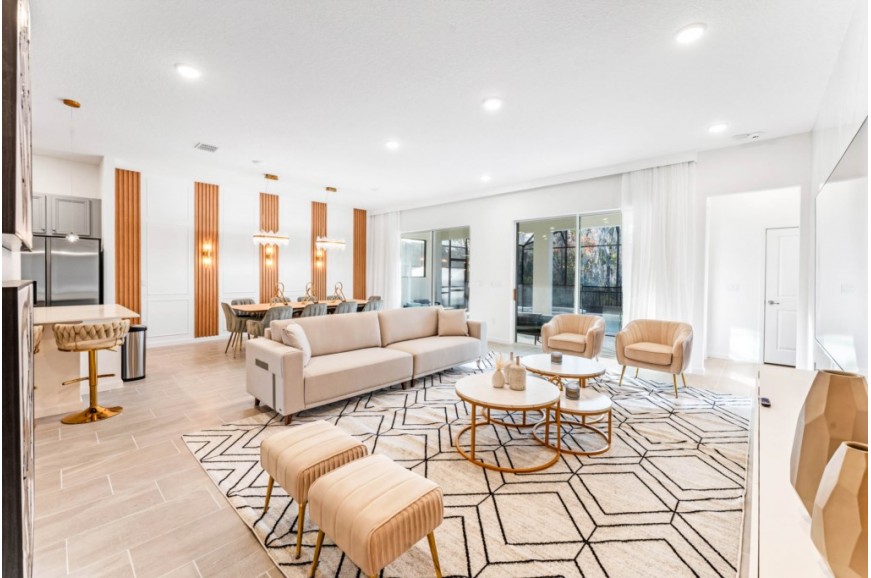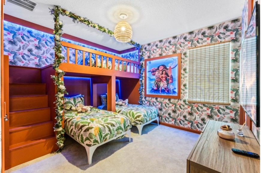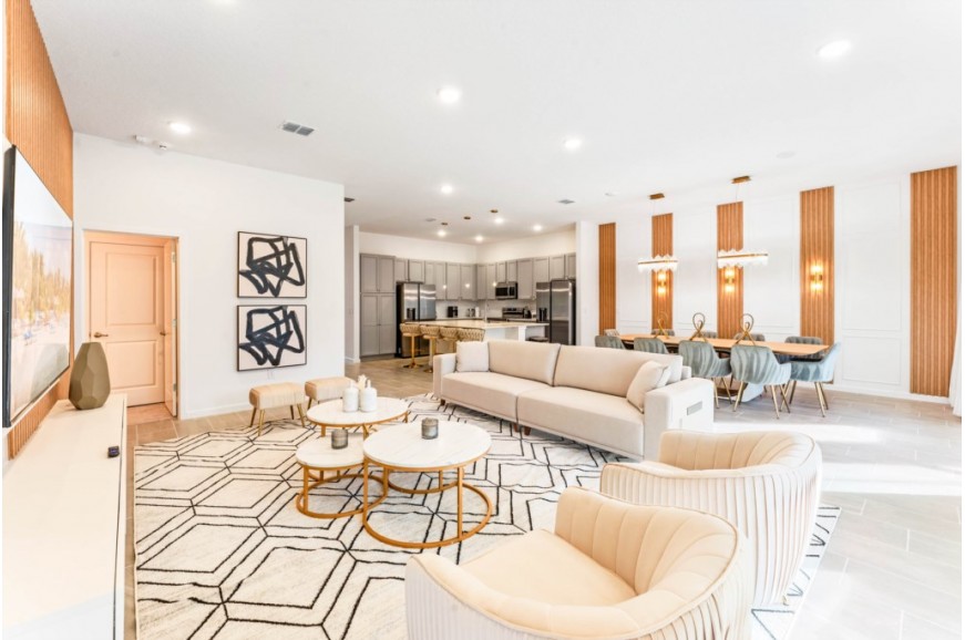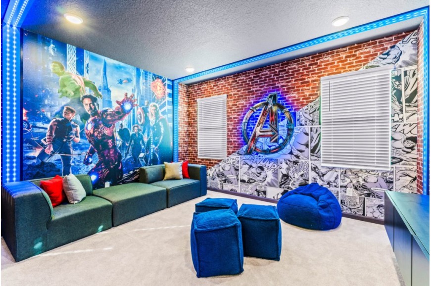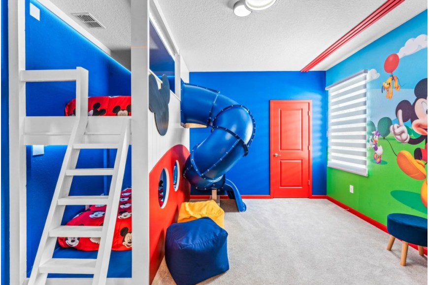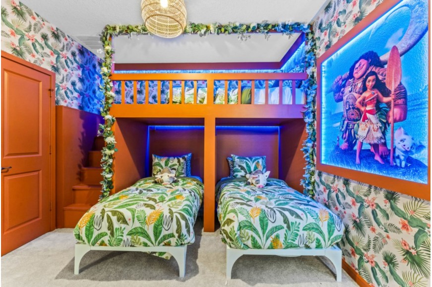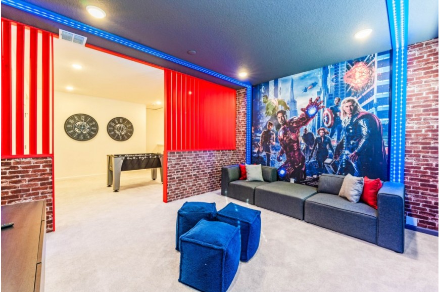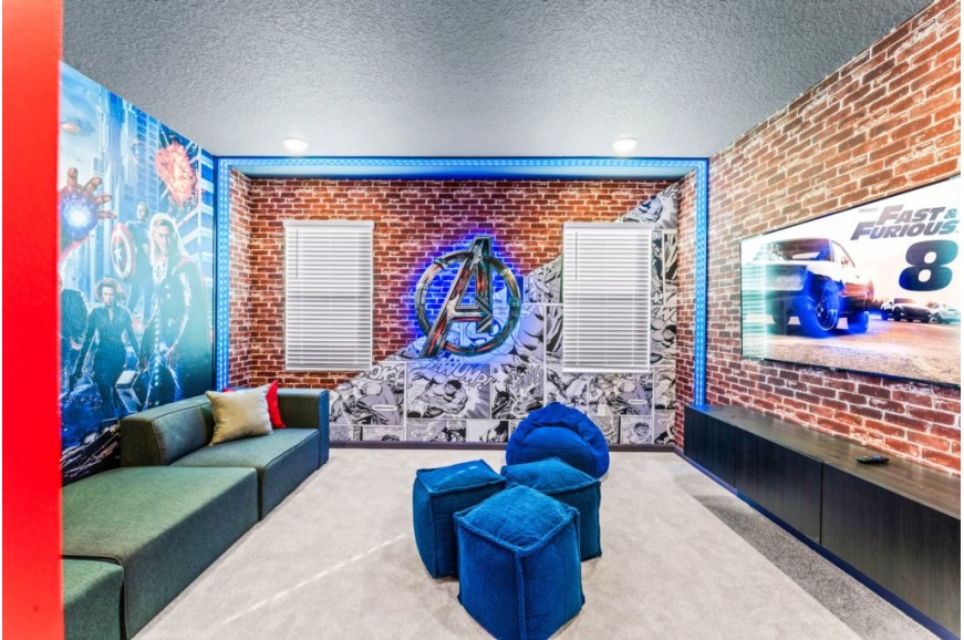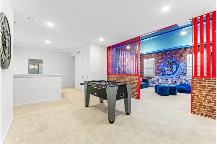 Veranda Palms Resort - Kissimmee, Florida is an upscale gated community located just 5 miles from Walt Disney World. This resort sits nestled just outside of Orlando, Florida, and has quickly become one of the most desired resorts in the Orlando area. During your stay, you will enjoy this well-appointed home that has been designed and decorated to provide you and your family with recreational amenities and leaves you well equipped to vacation with all the usual items you would expect to find at home. Veranda Palms Resort is only a 25-minute drive from the Orlando International Airport and is situated central to all of Orlando’s famous attractions. The resort amenities include a gated community, resort pool, children's water playground, clubhouse with fitness center, walking trails, and is next to the Shingle Lake Preserve. This spacious 12 bedroom holiday villa can comfortably accommodate a larger family or group of up to 24 people.