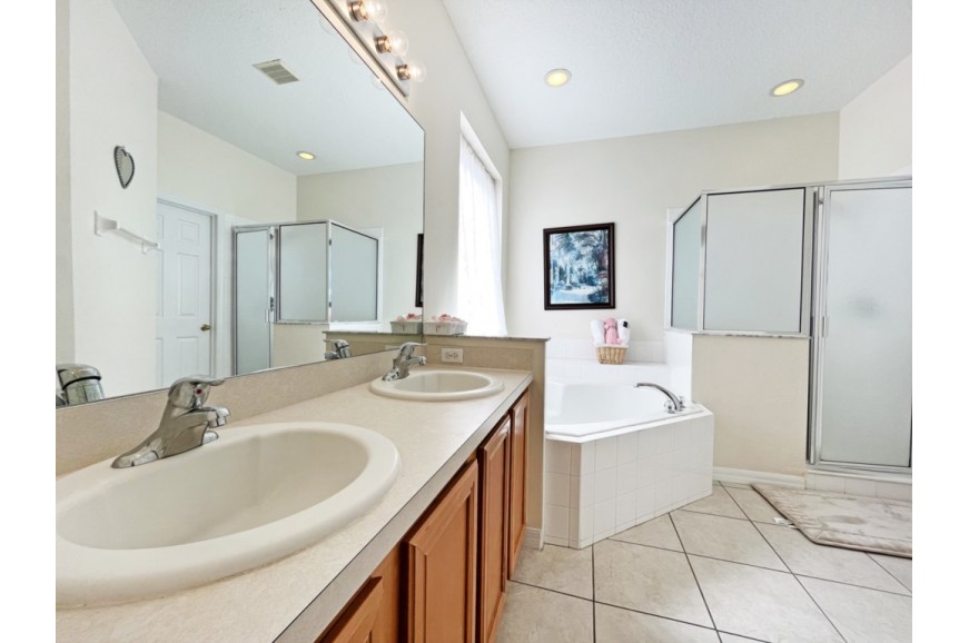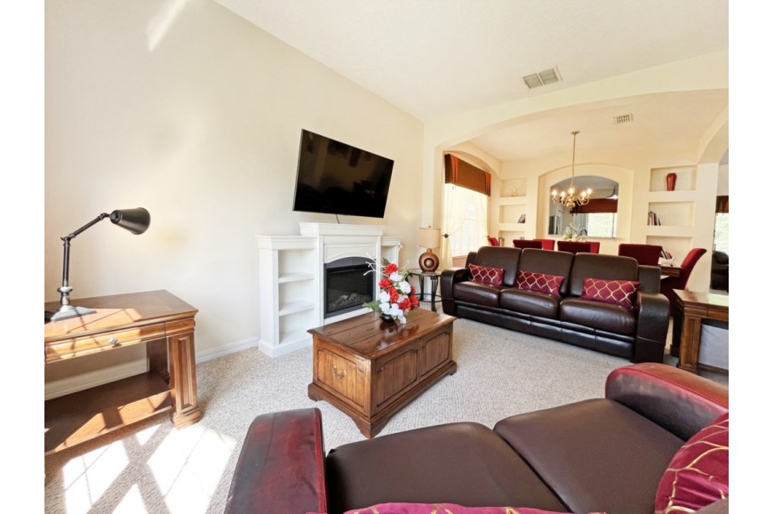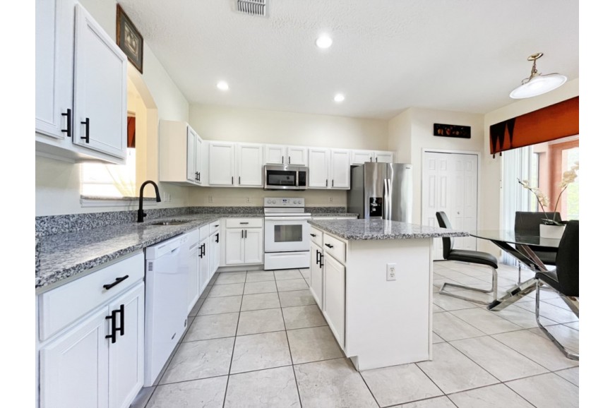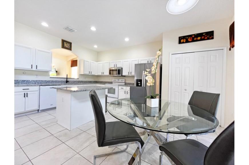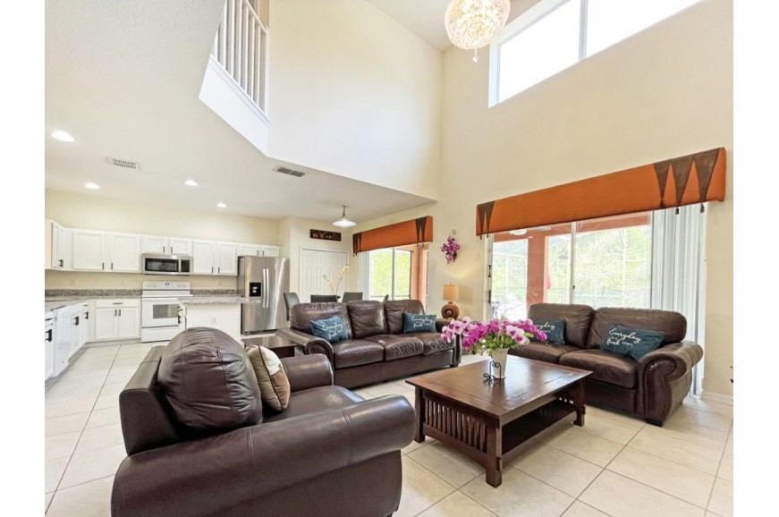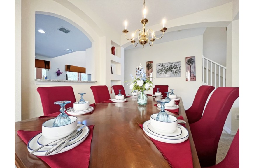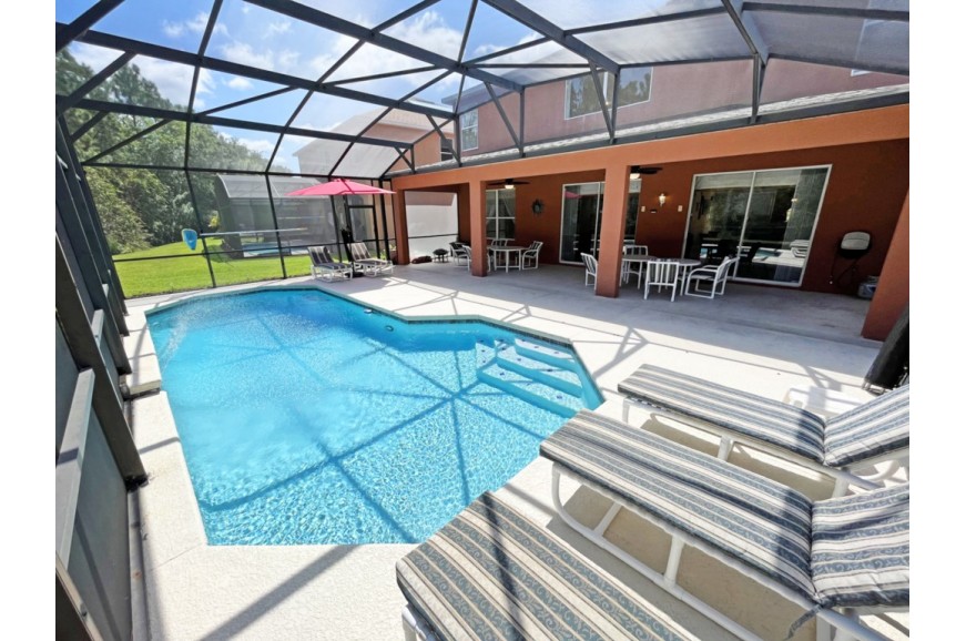 Terra Verde - Kissimmee, Florida is an upscale gated community located just 8 miles from Walt Disney World. This luxury resort sits nestled just off Hwy 192 in Kissimmee, Florida, and is one of the most desired resorts in the Orlando area. During your stay, you will enjoy this well-appointed home that has been designed and decorated to provide you and your family with an abundance of luxury amenities and leaves you well-equipped to vacation with all the usual items you would expect to find at home. Terra Verde Resort is only a 25-minute drive from the Orlando International Airport and is situated central to all of Orlando’s famous attractions. The resort's amenities include a gated community, an Olympic-size swimming pool, fountains, waterslides, a spa, a separate toddler pool, basketball courts, volleyball, a children’s park, and a clubhouse. The Clubhouse has pool tables, a fitness area, a video games area, and a spa. There are other outdoor recreational activities all surrounding the Olympic-size heated swimming pool creating a relaxing, playful atmosphere for the entire family! Terra Verde has all the amenities of a five-star hotel or resort with the comfort, convenience, and privacy of a private home. This spacious 6-bedroom home can comfortably accommodate a larger family or group of up to 12 people.