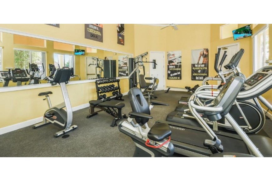 • Clubhouse fitness room with running machines, cycles, and widescreen TV
