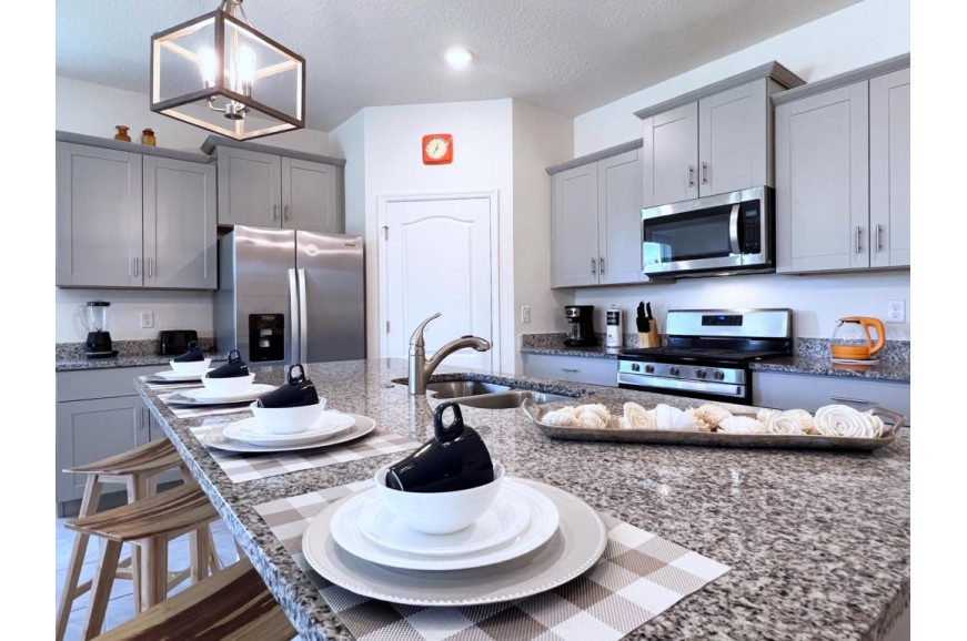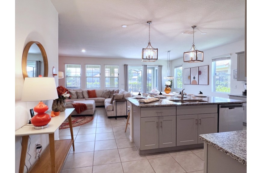 Solterra Resort - Davenport, Florida is a paradise located only 15 minutes from the area's main attraction... Walt Disney World. This luxury resort sits nestled just outside of Orlando, Florida, and has quickly become one of the most desired resorts in the Orlando area. During your stay, you will enjoy this well-appointed home that has been designed and decorated to provide you and your family with an abundance of luxury amenities and leaves you well-equipped to vacation with all the usual items you would expect to find at home. Solterra Resort is only a 30-minute drive from the Orlando International Airport and is situated central to all of Orlando’s famous attractions. The resort's amenities include a 6700 square foot clubhouse, swimming pool, spa, fitness center, business center with Internet, volleyball, Tennis, children's playground, and picnic area. This spacious 5-bedroom holiday villa can comfortably accommodate a larger family or group of up to 10 people.