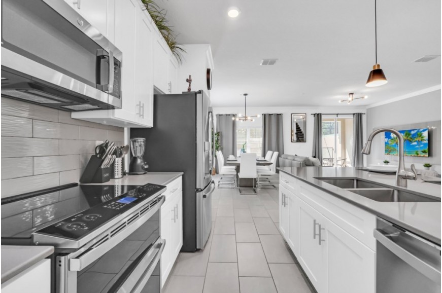 Storey Lake - Kissimmee, Florida is a brand new vacation community located just 4 miles from the magical world of Disney and just minutes to Universal, Sea World and the many water parks in the area. Central Florida is also home to some of the nation's top-rated golf courses and many are within a 10-minute drive of Storey Lake. The prime location lends itself to the premier shopping corridor including the famed Millennia, top restaurants and the world-renowned town of Celebration inspired by Disney. Storey Lake is also a 30-minute drive from the Orlando International Airport. The resort offers the best in family fun and is host to a wide variety of amenities and activities. This spacious 5 bedroom holiday villa can comfortably accommodate a large family or group of up to 10 guests.