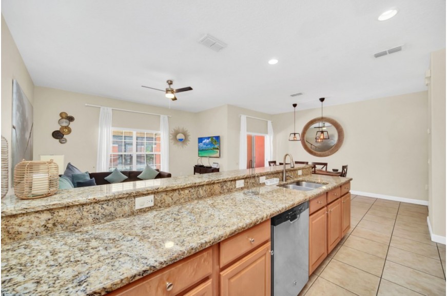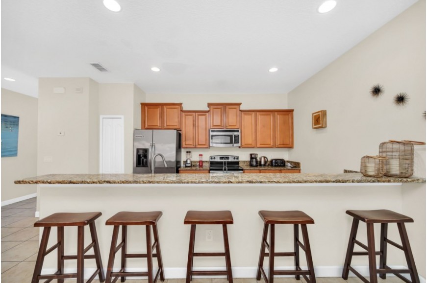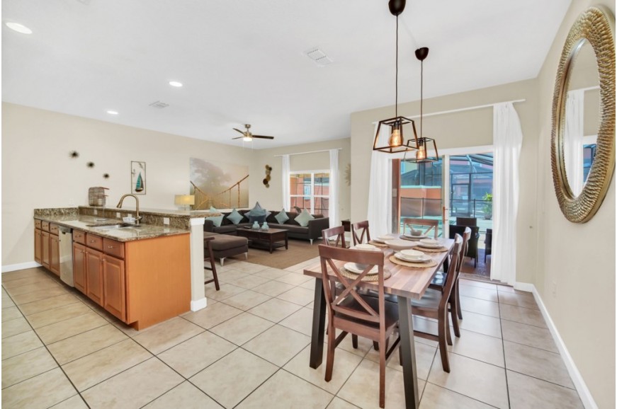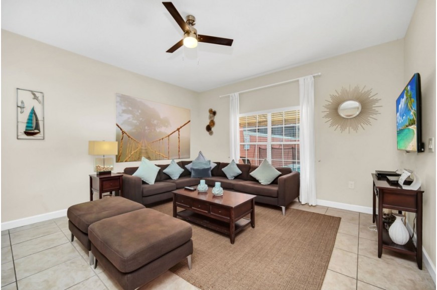 Paradise Palms - Kissimmee, Florida is an upscale gated community located just 5 miles from Walt Disney World. This luxury resort sits nestled just off Hwy 192 in Kissimmee, Florida, and is one of the most desired resorts in the Orlando area. During your stay, you will enjoy this well-appointed home that has been designed and decorated to provide you and your family with an abundance of luxury amenities and leaves you well-equipped to vacation with all the usual items you would expect to find at home. Paradise Palms Resort is only a 25-minute drive from the Orlando International Airport and is situated central to all of Orlando’s famous attractions. The resort's amenities include a gated community, a water park with an Olympic-size swimming Pool, fountains, waterslides, a spa, a separate toddler pool, tennis courts, volleyball, and a children’s park and clubhouse. The Clubhouse has pool tables, ping-pong tables, a video game area, a sundry shop, a fitness room with top-of-the-line fitness equipment, and a high-definition surround sound movie theater. There are other outdoor recreational activities all surrounding the double Olympic-size heated swimming pool creating a relaxing, playful atmosphere for the entire family! Paradise Palms has all the amenities of a five-star hotel or resort but with the comfort, convenience, and privacy of a private home. This spacious 4-bedroom holiday villa can comfortably accommodate a larger family or group of up to 8 people.