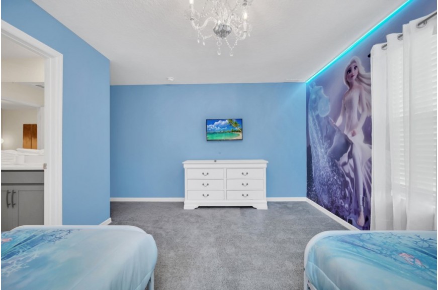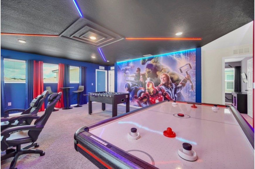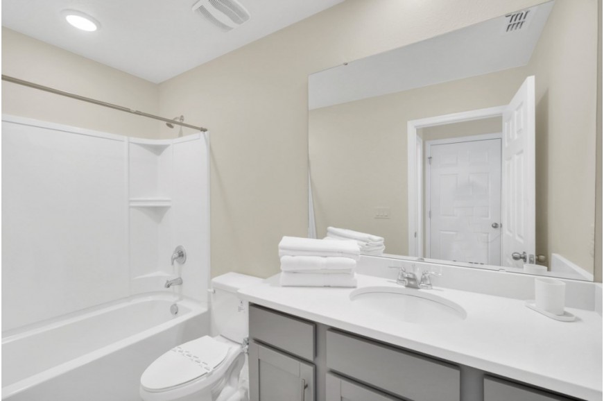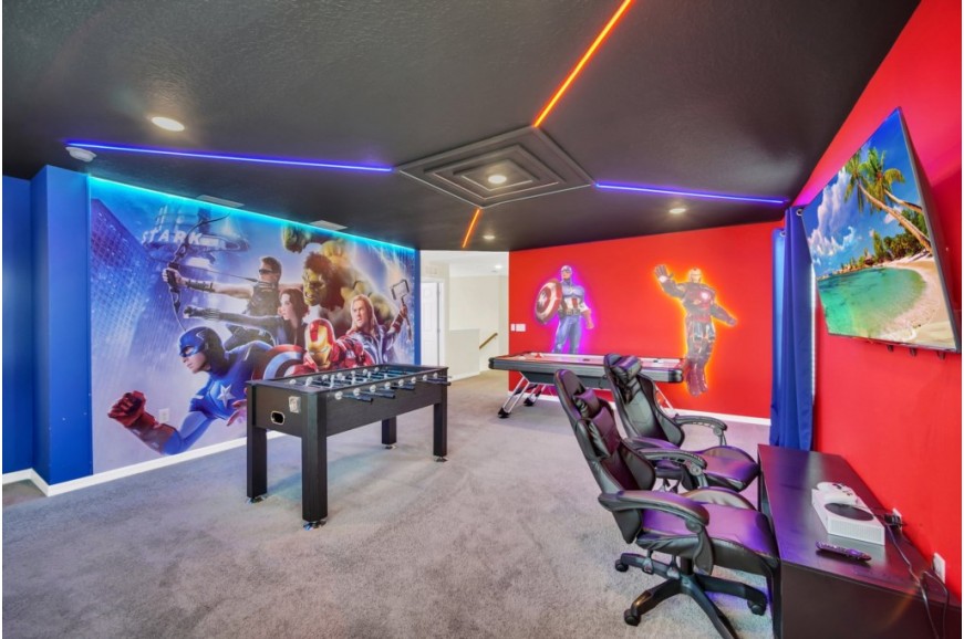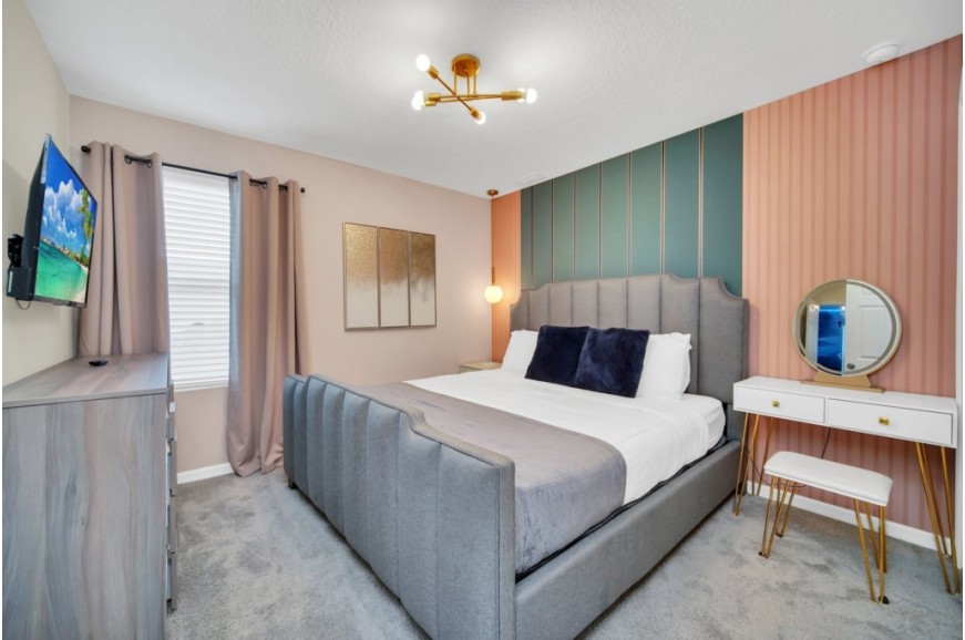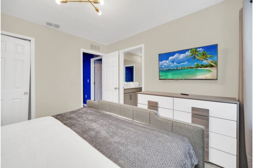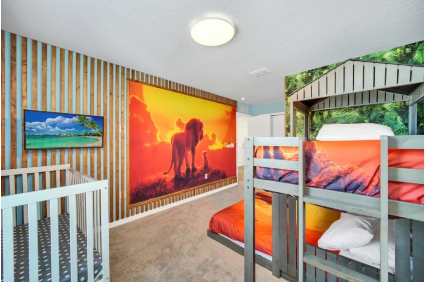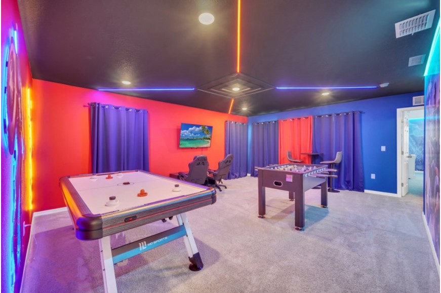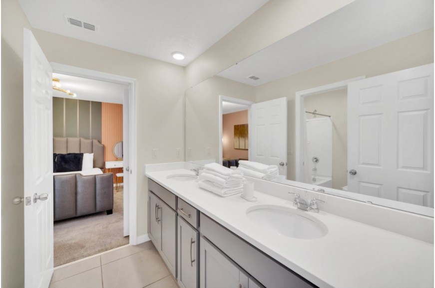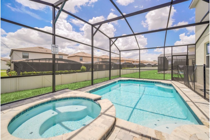 Solara Resort - Kissimmee, Florida is an upscale community currently under development just 7 miles from Walt Disney World. This gated resort community sits nestled just outside of Orlando, Florida. During your stay, you will enjoy this well-appointed home that has been designed and decorated to provide you and your family with an abundance of luxury amenities and leaves you well-equipped to vacation with all the usual items you would expect to find at home. The resort is only a 30-minute drive from the Orlando International Airport and is situated central to all of Orlando’s famous attractions. The resort boasts an expansive clubhouse that includes a grand pool, complete with a surfing simulator, cabanas, pool bar, children's playground, sand volleyball court, basketball court, and soccer field. Inside the clubhouse sits the lounge, bar & grill, fitness center, business center, and sundries store. This spacious 7-bedroom holiday villa can comfortably accommodate a larger family or group of up to 14 people.