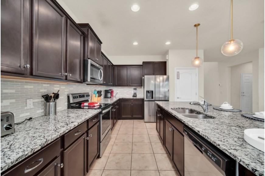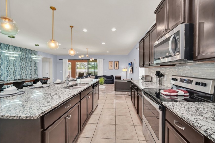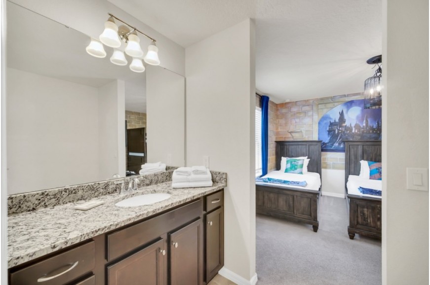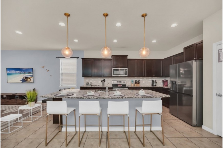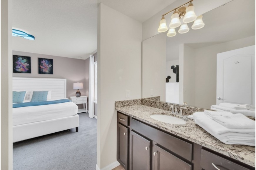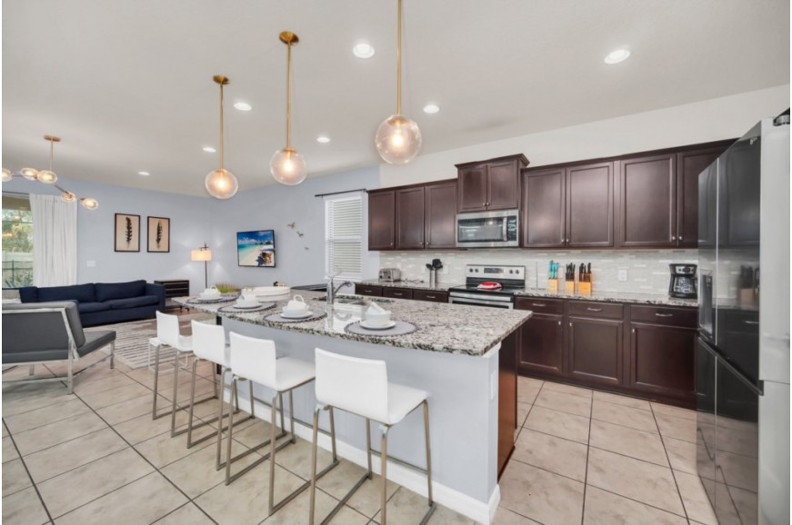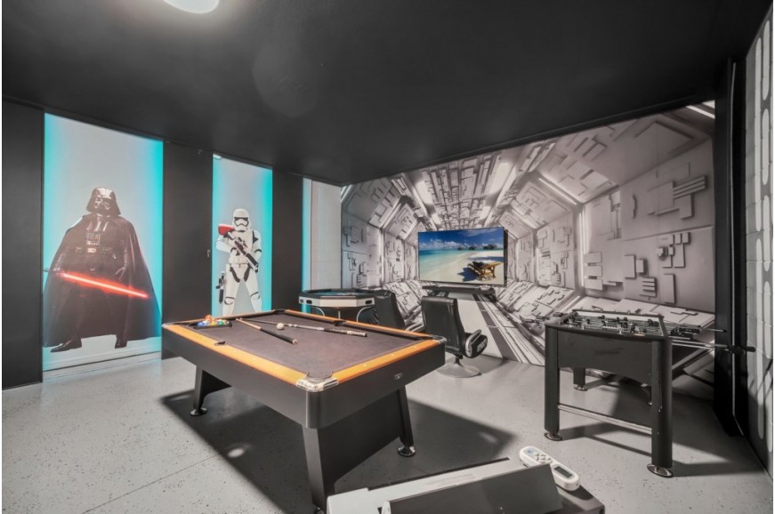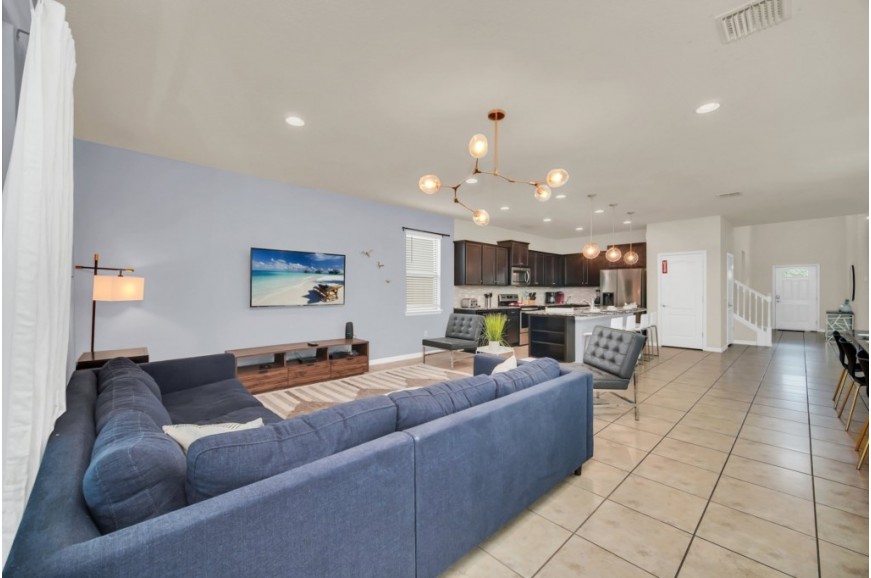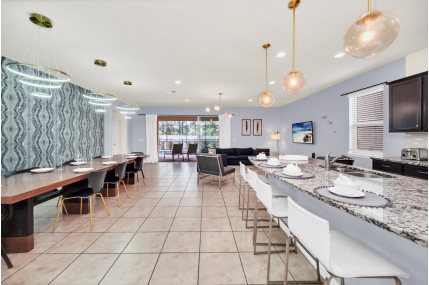 Windsor at Westside - Kissimmee, Florida is an upscale gated community located just 10 minutes from Walt Disney World. This luxury home sits nestled just outside of Orlando, Florida, and has quickly become one of the most desired locations in the Orlando area. During your stay, you will enjoy this well-appointed home that has been designed and decorated to provide you and your family with an abundance of luxury amenities and leaves you well-equipped to vacation with all the usual items you would expect to find at home. Windsor at Westside is only a 30-minute drive from the Orlando International Airport and is situated central to all of Orlando’s famous attractions. This spacious 8-bedroom holiday villa can comfortably accommodate a larger family or group of up to 16 people.