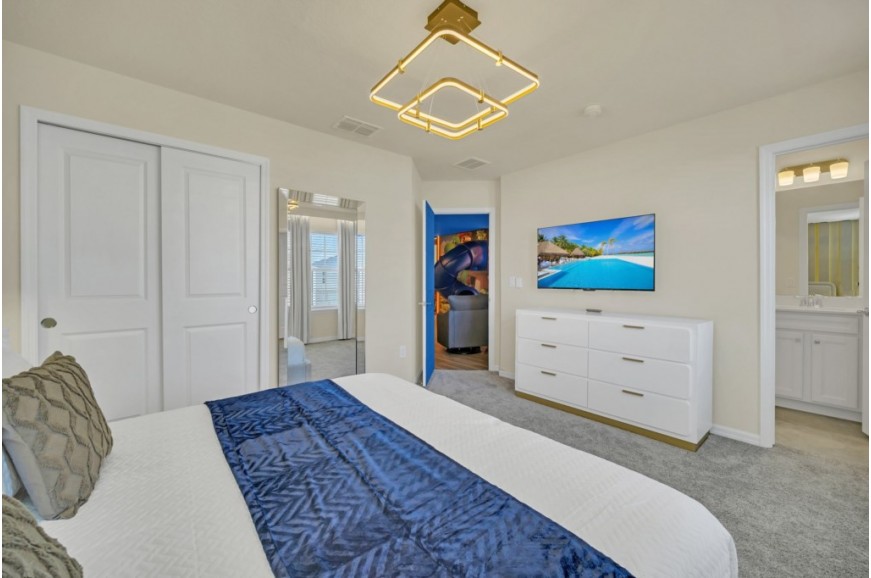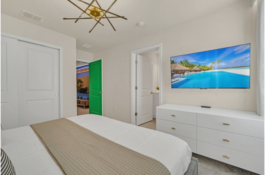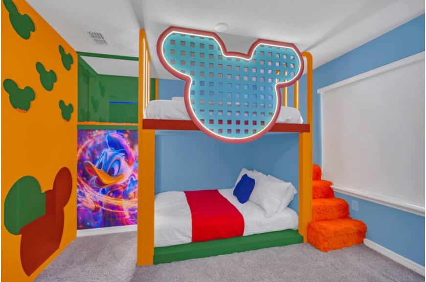 Windsor Cay Resort - Clermont, Florida is a beautiful, family-friendly resort community in a prime location. Just a short drive from Orlando's top attractions, including Walt Disney World, Universal Studios, and SeaWorld. Windsor Cay is the perfect base for your Florida getaway. During your stay, you will enjoy this well-appointed home that has been designed and decorated to provide you and your family with an abundance of luxury amenities and leaves you well-equipped to vacation with all the usual items you would expect to find at home. Windsor Cay Resort boasts world-class amenities, including a large resort-style pool with water slides, a splash pad, and cabanas for lounging. Guests can enjoy a fitness center, a clubhouse with a game room, sports courts, and miniature golf. Nestled in a quiet, gated community, Windsor Cay Resort combines the best of luxury and relaxation, making it an ideal destination for families, couples, and groups seeking an unforgettable vacation experience. Windsor Cay Resort has all the amenities of a five-star hotel or resort but with the comfort, convenience, and privacy of a private home. This spacious 10-bedroom holiday villa can comfortably accommodate a larger family or group of up to 20 people.