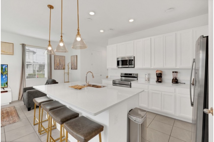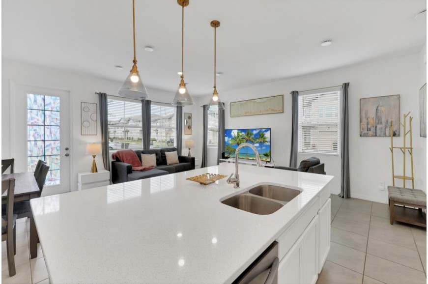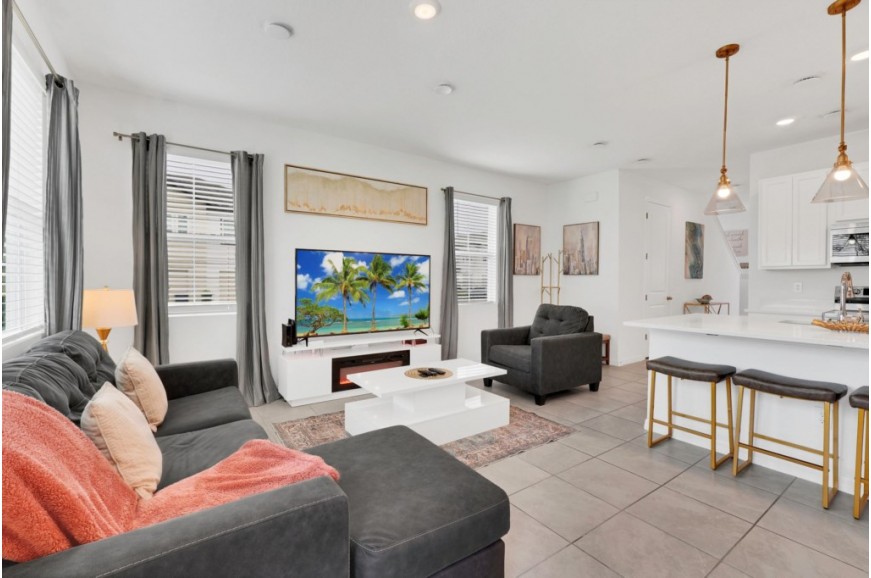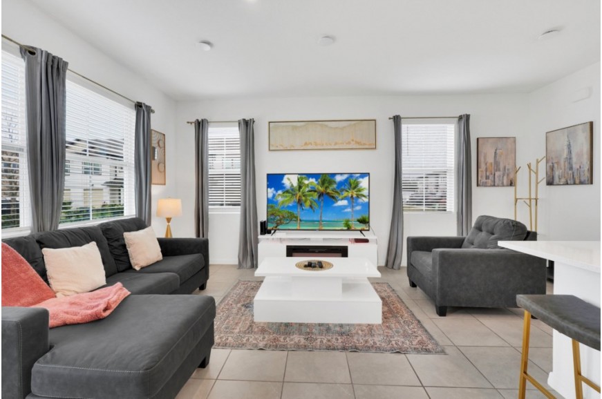 Festival Resort - Davenport, Florida is a charming and family-friendly community located just 8 miles from Walt Disney World. This family-oriented resort sits nestled just off US 27 in Davenport, Florida, and is one of the most desired tourist areas in the Orlando area. During your stay, you will enjoy this well-appointed villa that has been designed and decorated to provide you and your family with an abundance of amenities and leaves you well-equipped to vacation with all the usual items you would expect to find at home. Festival Resort is only a 30-minute drive from the Orlando International Airport and is situated central to all of Orlando’s famous attractions. The resort's amenities include a gated community, a large swimming pavilion with a children's splash playground, private cabanas, a volleyball court, and a putt-putt course. The Clubhouse offers a bar and grill and a fitness center. There is also a general store and ice cream parlor for guests' enjoyment. Festival Resort has all the amenities of a five-star hotel or resort but with the comfort, convenience, and privacy of a private home. This spacious 3-bedroom holiday villa can comfortably accommodate a larger family or group of up to 6 people.