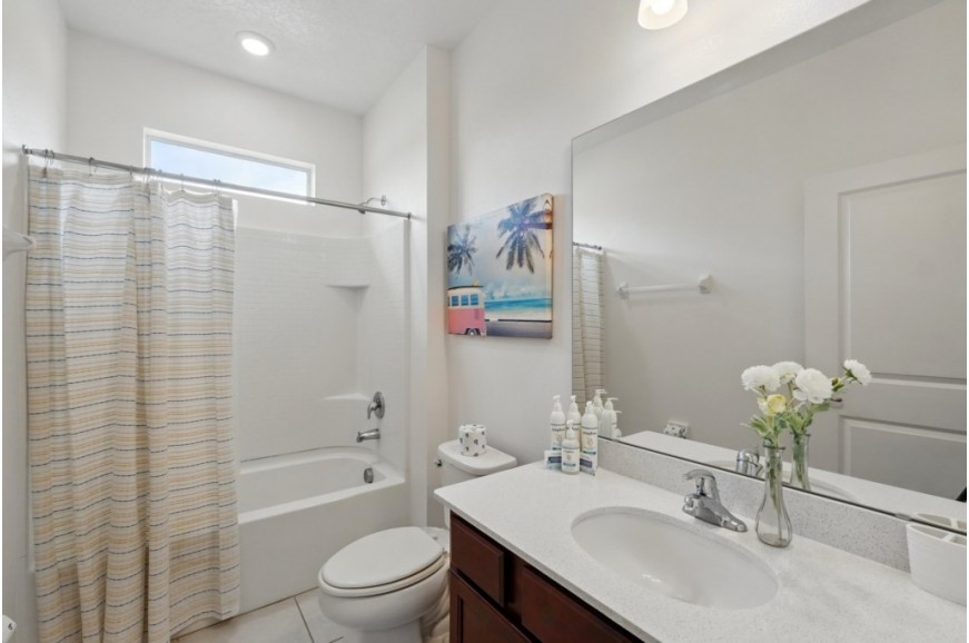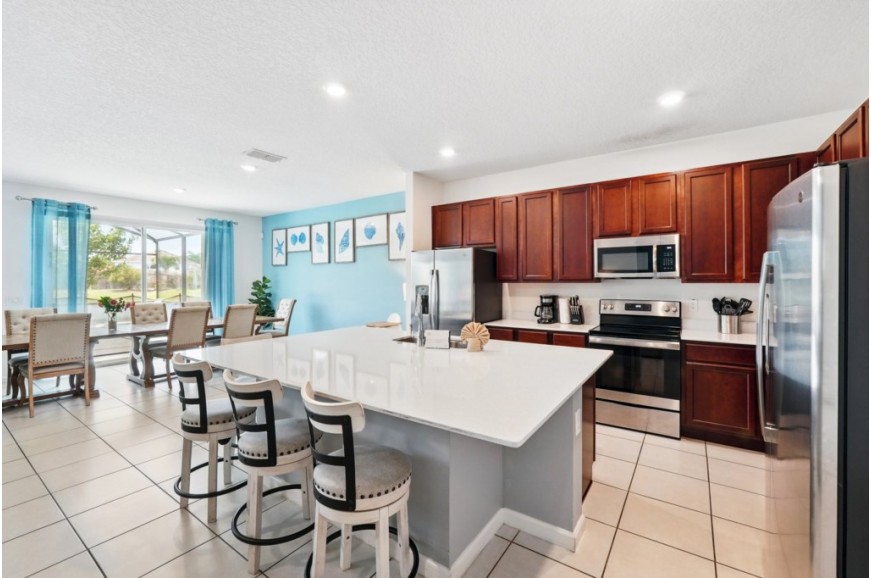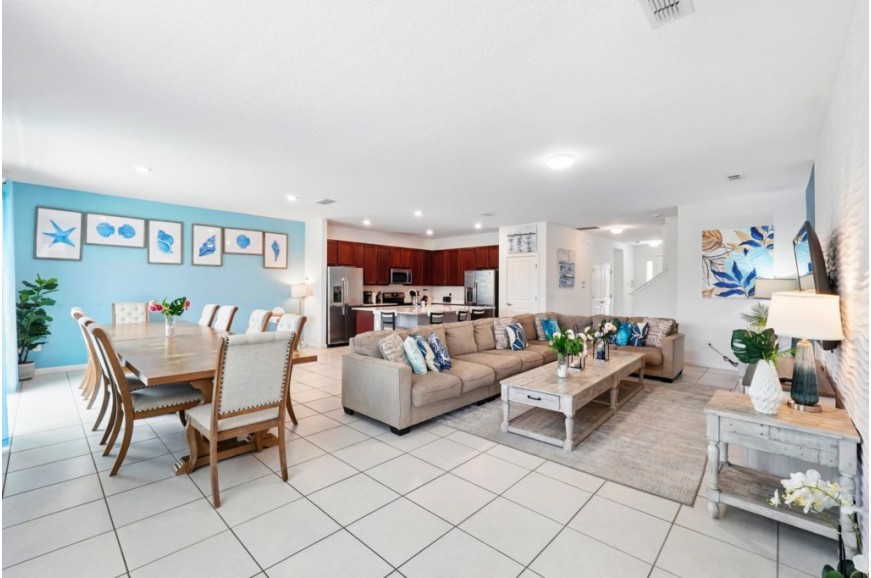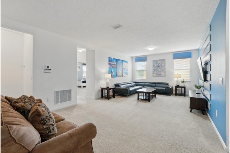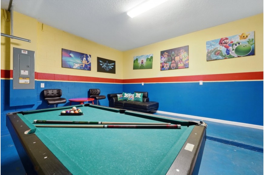 Veranda Palms Resort - Kissimmee, Florida, is an upscale gated community located just 5 miles from Walt Disney World. This resort sits nestled just outside of Orlando, Florida, and has quickly become one of the most desired resorts in the Orlando area. During your stay, you will enjoy this well-appointed home that has been designed and decorated to provide you and your family with recreational amenities and leave you well equipped to vacation with all the usual items you would expect to find at home. Veranda Palms Resort is only a 25-minute drive from the Orlando International Airport and is situated central to all of Orlando’s famous attractions. The resort amenities include a gated community, resort pool, children's water playground, clubhouse with fitness center, walking trails, and is next to the Shingle Lake Preserve. This spacious 10-bedroom holiday villa can comfortably accommodate a larger family or group of up to 20 people.