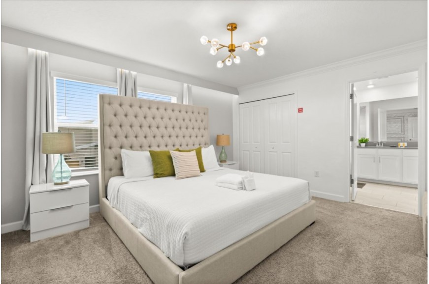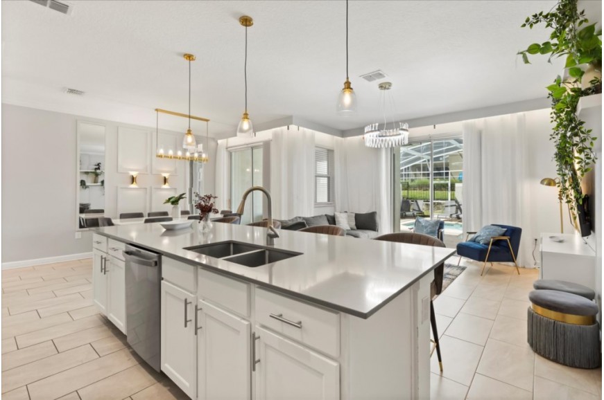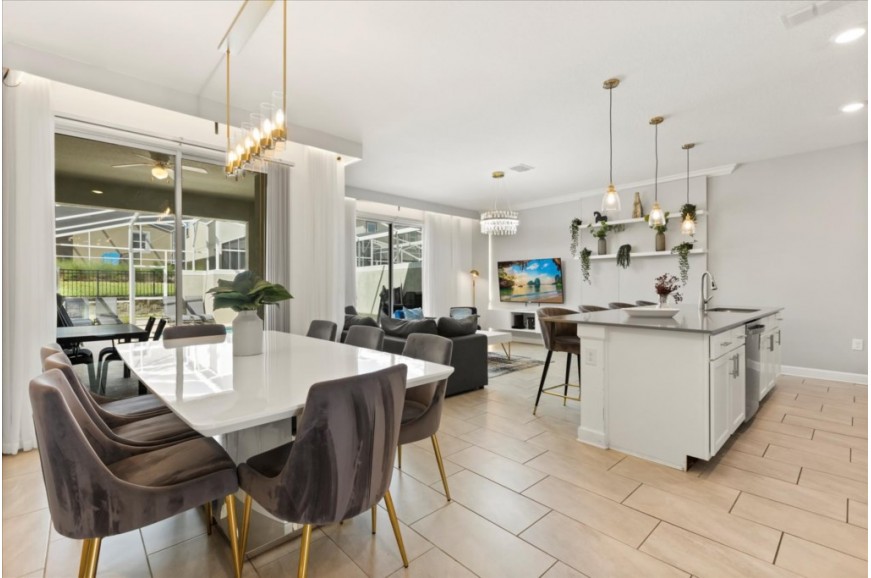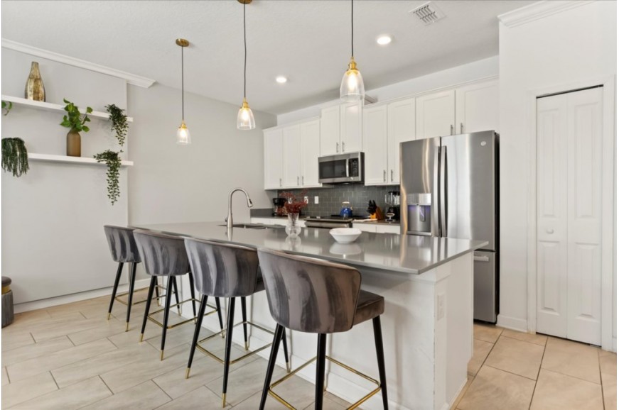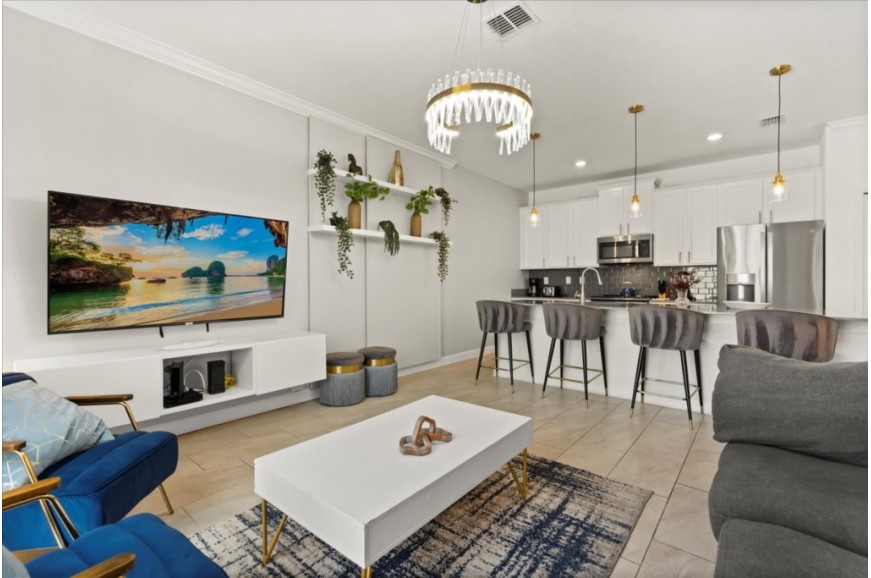 The Retreat at Champions Gate - Kissimmee, Florida is a new upscale gated resort community located just 12 miles from Walt Disney World. This townhome sits nestled just outside of Orlando, Florida, and will quickly become one of the most desired locations in the Orlando area. During your stay, you will enjoy this well-appointed home that has been designed and decorated to provide you and your family with an abundance of luxury amenities and leaves you well-equipped to vacation with all the usual items you would expect to find at home. The Retreat at Champions Gate is only a 30-minute drive from the Orlando International Airport and is situated central to all of Orlando’s famous attractions. This spacious 4-bedroom holiday villa can comfortably accommodate a larger family or group of up to 8 people.