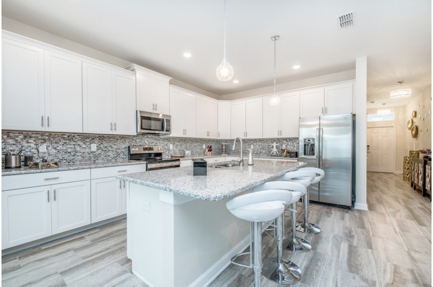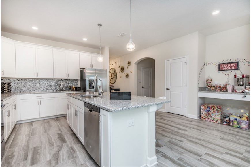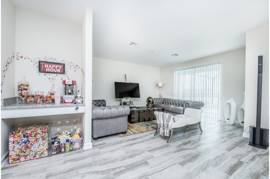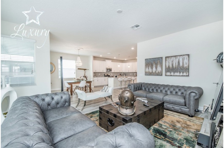Storey Lake - Kissimmee, Florida is a brand new vacation community located just 4 miles from the magical world of Disney and just minutes to Universal, Sea World and the many water parks in the area. Central Florida is also home to some of the nation's top-rated golf courses and many are within a 10-minute drive of Storey Lake. The prime location lends itself to the premier shopping corridor including the famed Millennia, top restaurants and the world renowned town of Celebration inspired by Disney.  Storey Lake is also a 30-minute drive from the Orlando International Airport. The resort offers the best in family fun and is host to a wide variety of amenities and activities. This spacious 6 bedroom holiday villa can comfortably accommodate a large family or group of up to 12 guests.