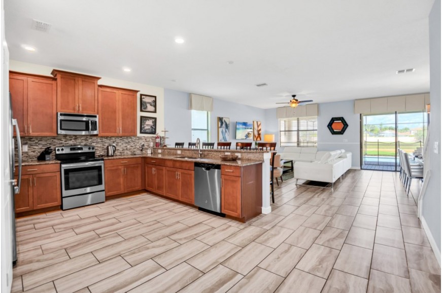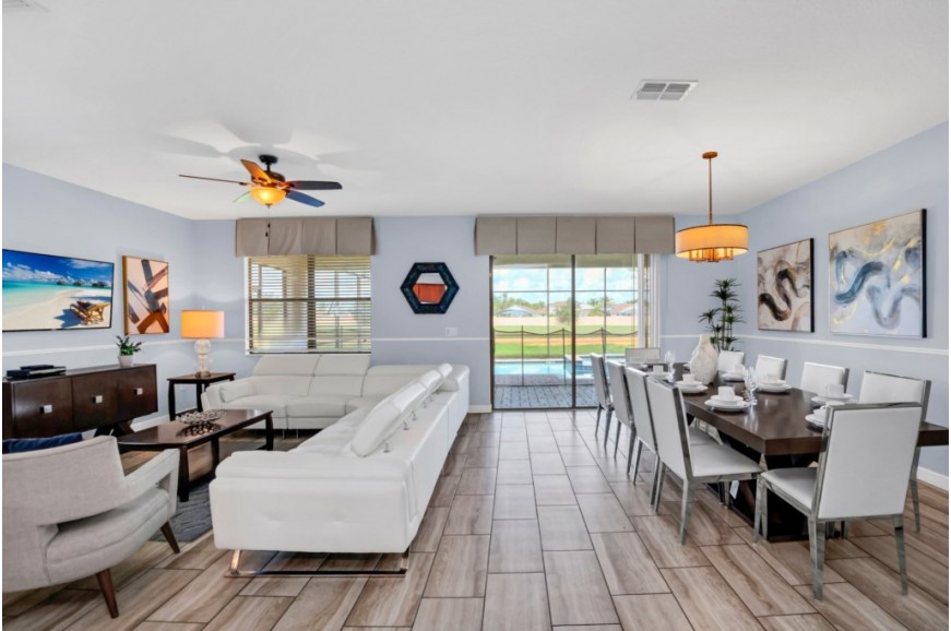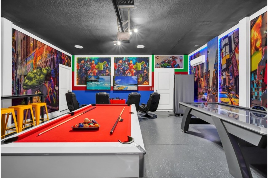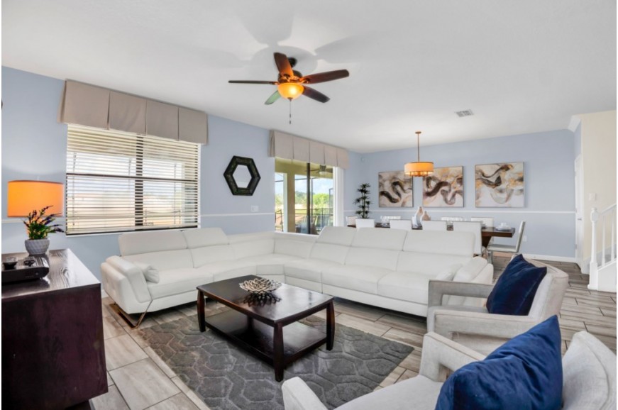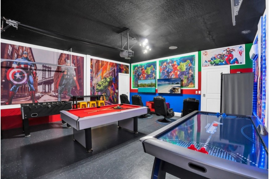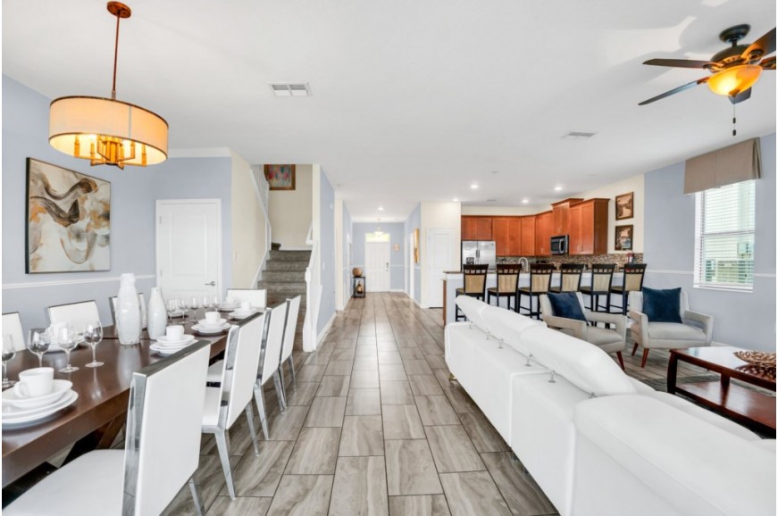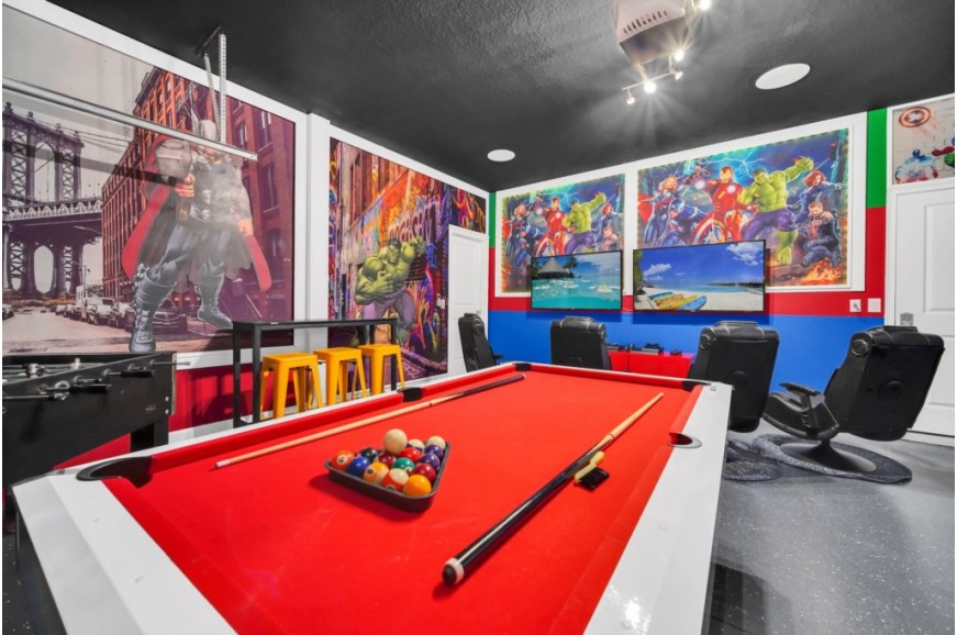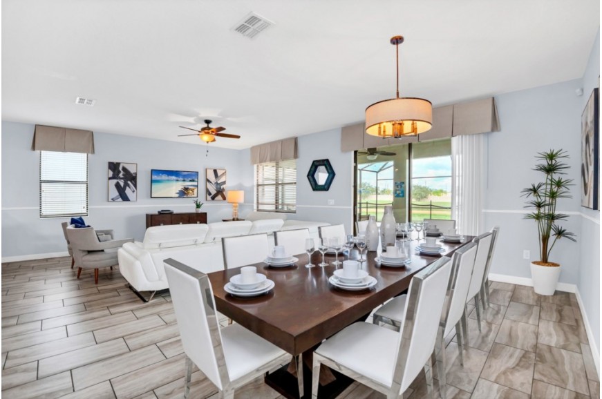 The Retreat at Champions Gate - Kissimmee, Florida is a new upscale gated resort community located just 12 miles from Walt Disney World. This luxury home sits nestled just outside of Orlando, Florida and will quickly become one of the most desired locations in the Orlando area. During your stay, you will enjoy this well-appointed home that has been designed and decorated to provide you and your family an abundance of luxury amenities and leaves you well equipped to vacation with all the usual items you would expect to find at home. The Retreat at Champions Gate is only a 30-minute drive from the Orlando International Airport and is situated central to all of Orlando’s famous attractions. This spacious 9 bedroom holiday villa can comfortably accommodate a larger family or group of up to 18 people.