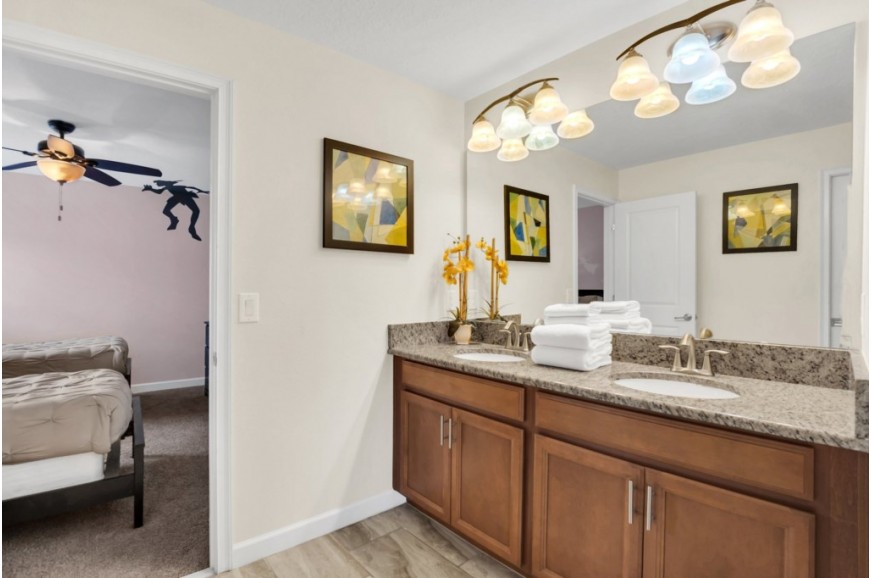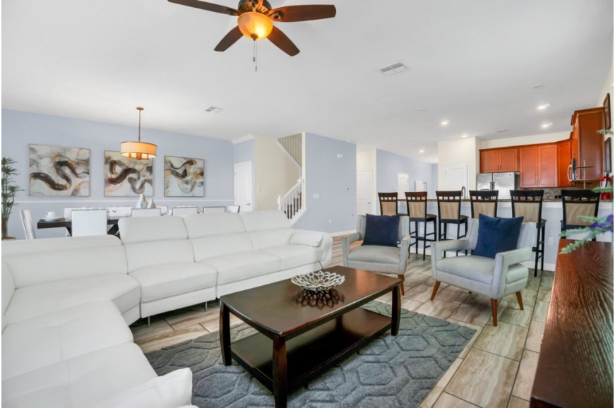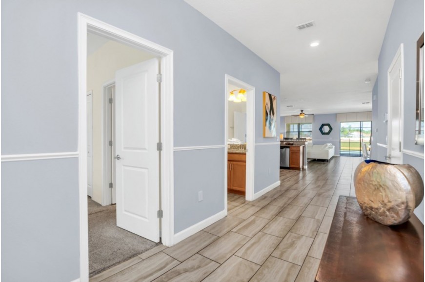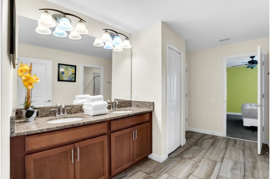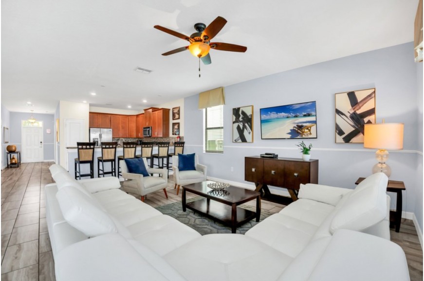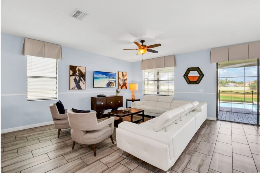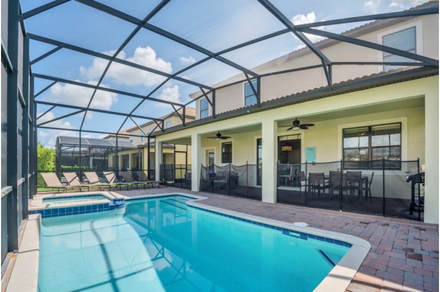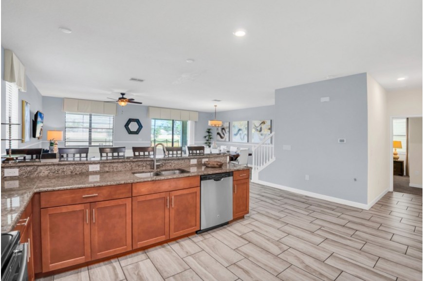 The Retreat at Champions Gate - Kissimmee, Florida is a new upscale gated resort community located just 12 miles from Walt Disney World. This luxury home sits nestled just outside of Orlando, Florida and will quickly become one of the most desired locations in the Orlando area. During your stay, you will enjoy this well-appointed home that has been designed and decorated to provide you and your family an abundance of luxury amenities and leaves you well equipped to vacation with all the usual items you would expect to find at home. The Retreat at Champions Gate is only a 30-minute drive from the Orlando International Airport and is situated central to all of Orlando’s famous attractions. This spacious 9 bedroom holiday villa can comfortably accommodate a larger family or group of up to 18 people.