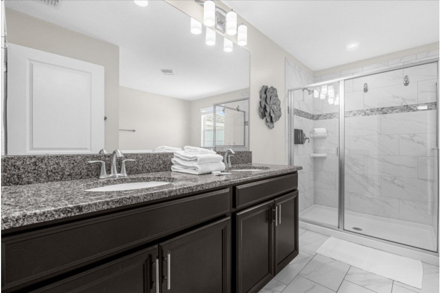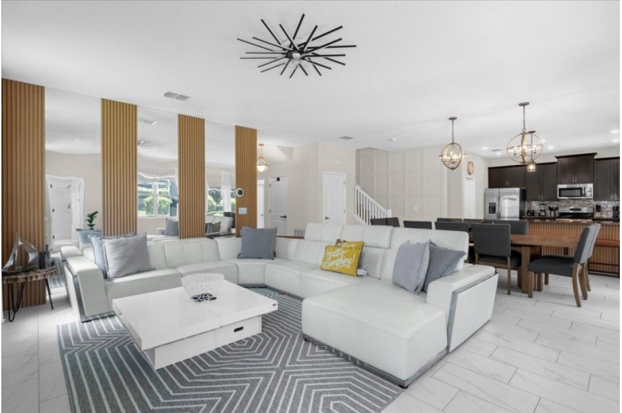 The Retreat at Champions Gate - Kissimmee, Florida is a new upscale gated resort community located just 12 miles from Walt Disney World. This luxury home sits nestled just outside of Orlando, Florida, and will quickly become one of the most desired locations in the Orlando area. During your stay, you will enjoy this well-appointed home that has been designed and decorated to provide you and your family with an abundance of luxury amenities and leaves you well-equipped to vacation with all the usual items you would expect to find at home. The Retreat at Champions Gate is only a 30-minute drive from the Orlando International Airport and is situated central to all of Orlando’s famous attractions. This spacious 6-bedroom holiday villa can comfortably accommodate a larger family or group of up to 12 people.